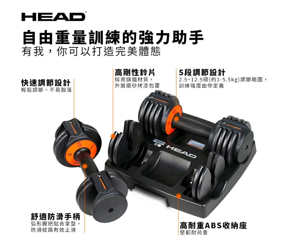 Buy HEAD 12.5lb 極速調重啞鈴(一對) - 黑色 | 自由重量訓練 | 舒適防滑手柄 | 香港行貨 price in outletexpress .com Hong Kong.In promotion and sale.