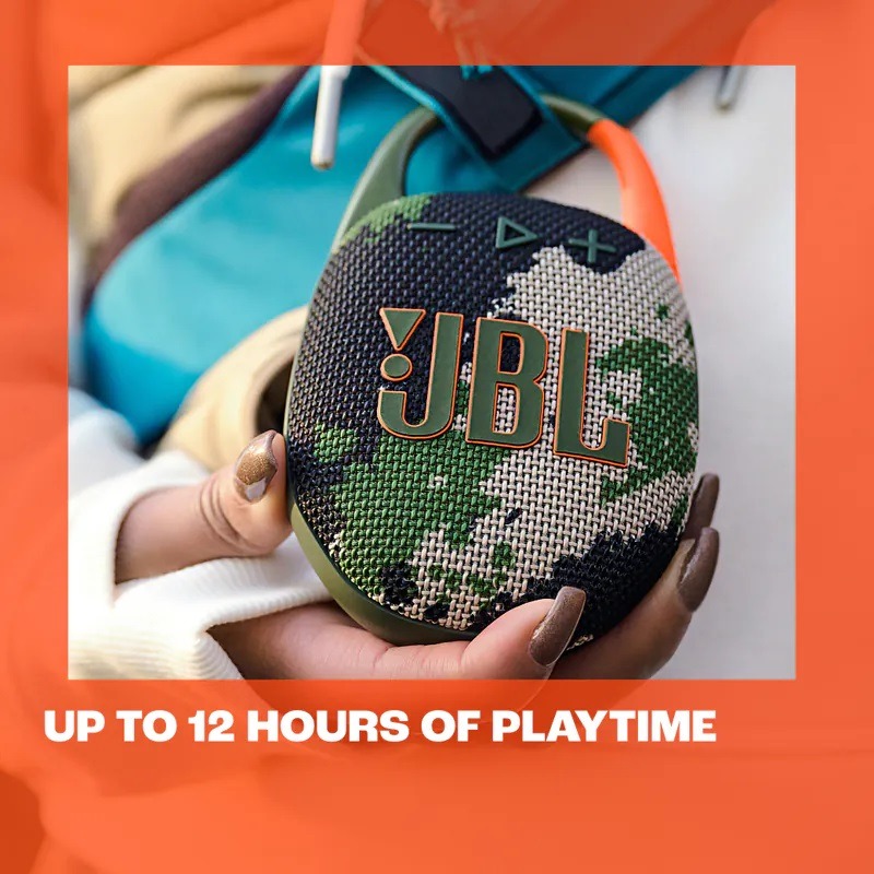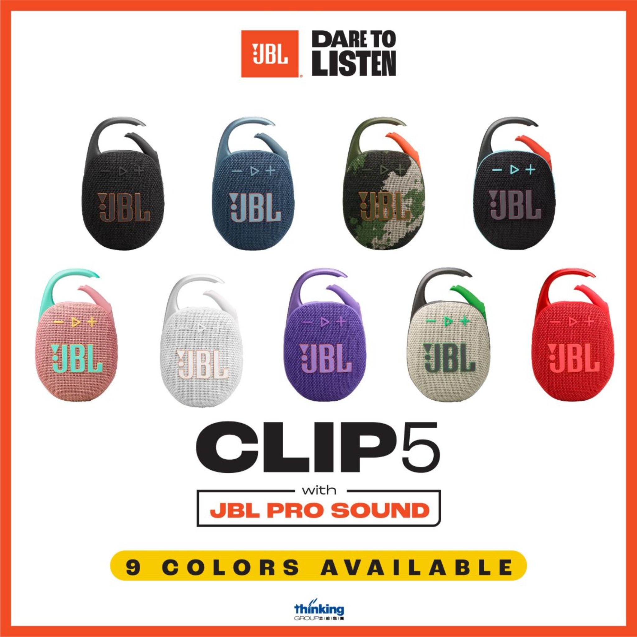 JBL Clip 5 是一款小巧強大的可攜式防水藍牙音響,體積僅 86.3×134.5×46mm,淨重 0.285 公斤,單手可輕鬆握持。配備重新設計的寬口整合式掛鉤,可穩固夾掛於背包、皮帶圈等物品,攜帶極為便利。其搭載 45mm驅動單元和被動式散熱器,輸出 7W RMS 功率,能呈現飽滿有力的 JBL Pro Sound 音效與強勁低音。支援藍牙 5.3 連接,搭配 JBL Portable 應用程式可微調音效。續航力達 12 小時,開啟 Playtime Boost 功能可再延長 3 小時,且具備 IP67 防水防塵認證,適合露營、健行等戶外場景。還可透過 Auracast™連接多台喇叭,多種鮮豔配色與再生材料製成更添吸引力。