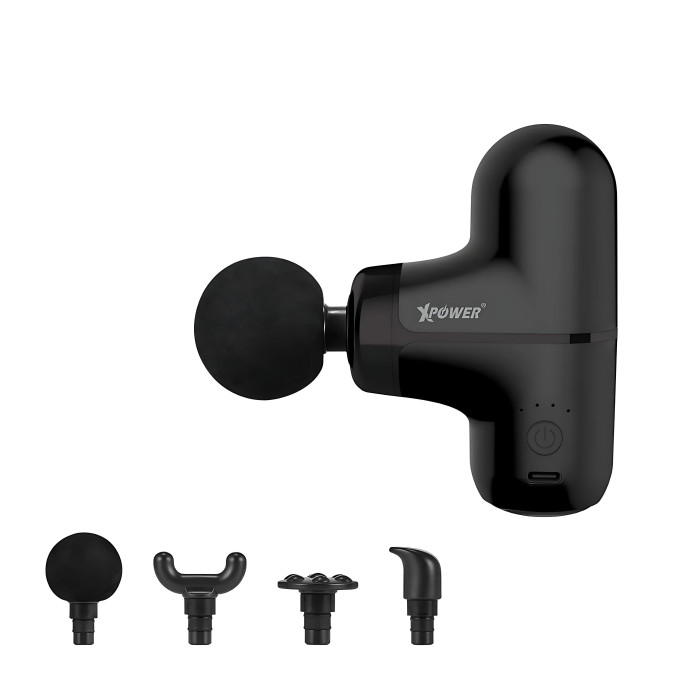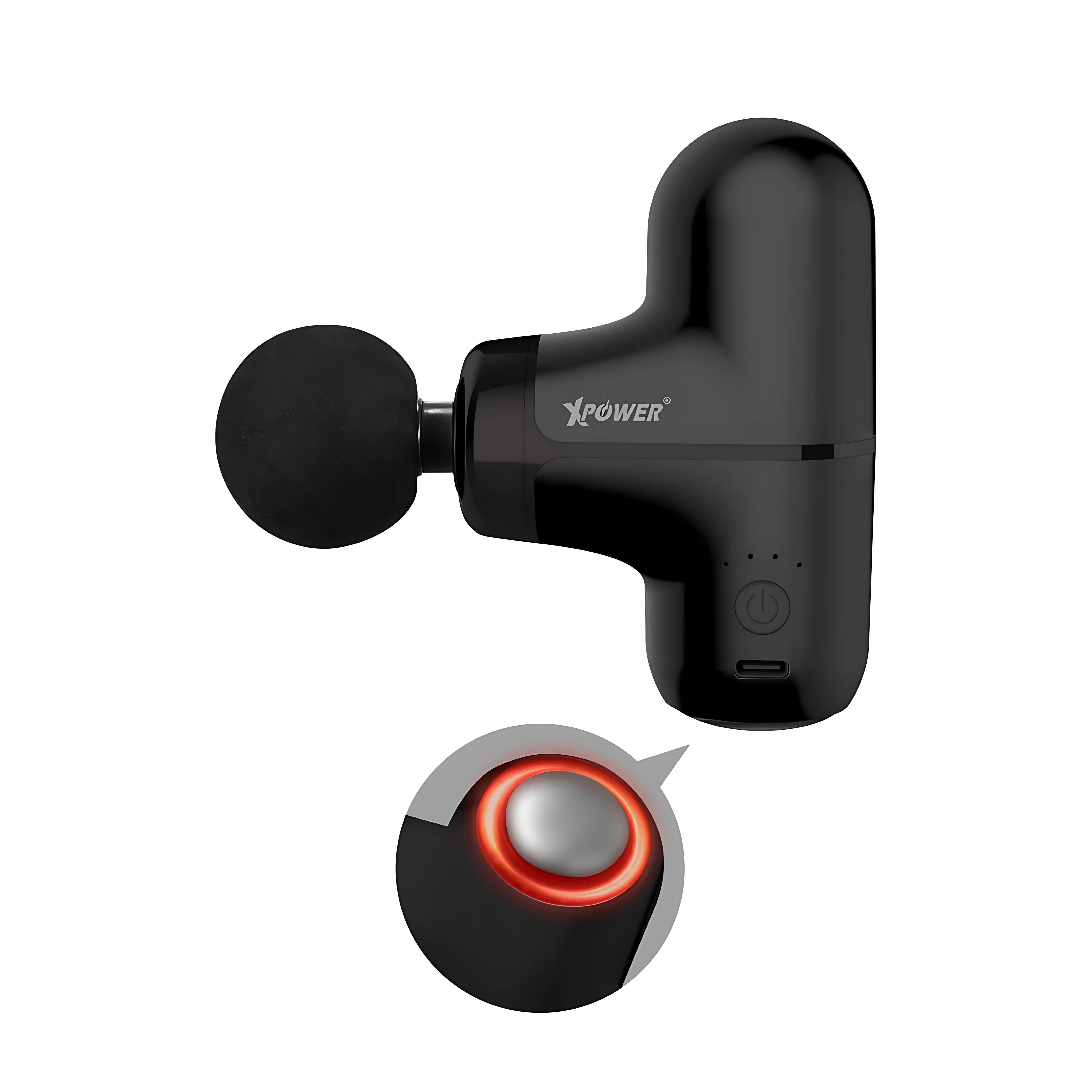 XPower MG17 全球最細2合1超迷你熱敷按摩槍 - 黑色 | 底部加熱 | 多部位按摩頭 | 香港行貨