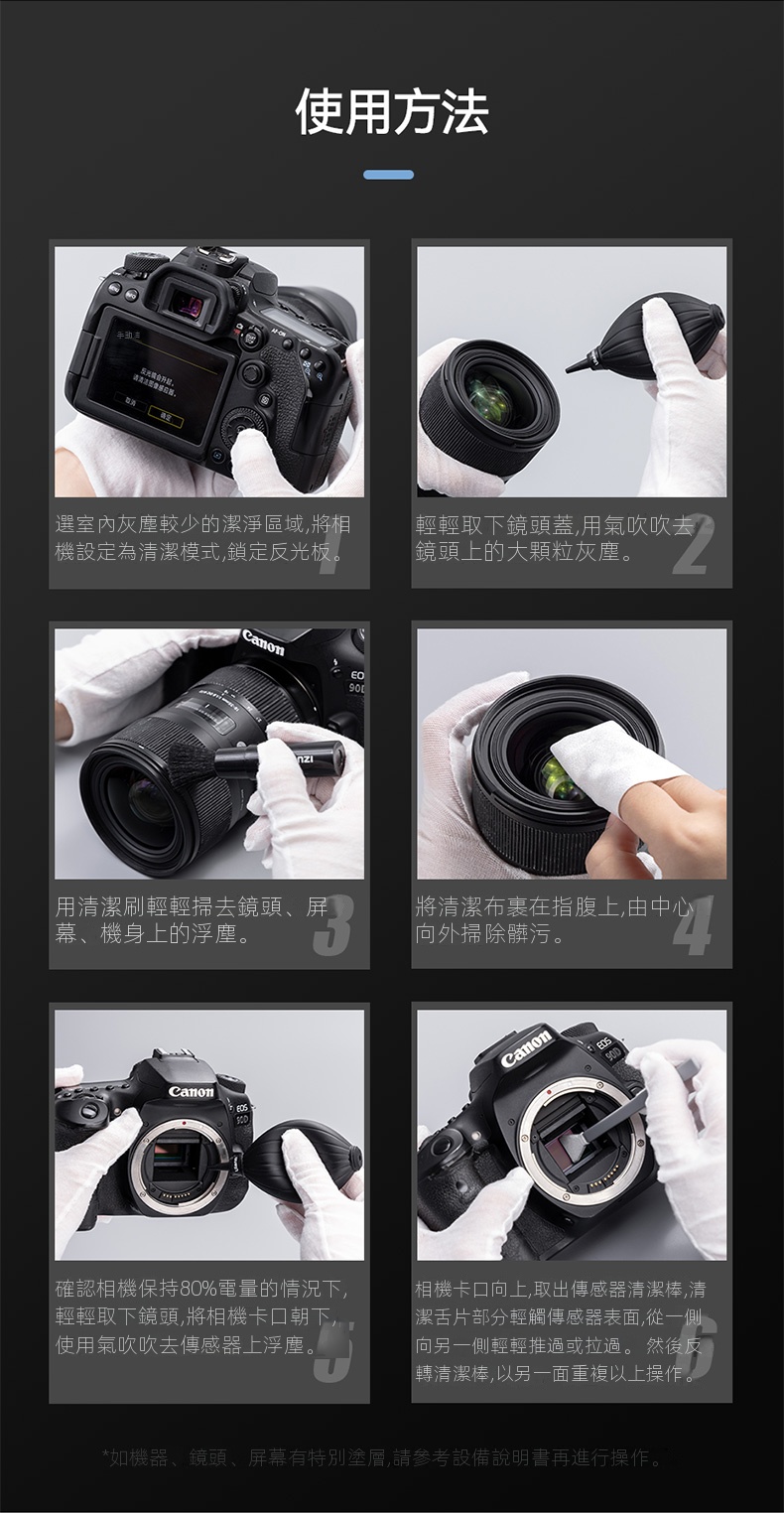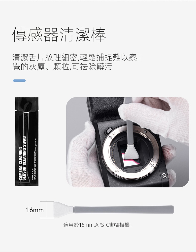 • 專用傳感器清潔棒,細密紋理輕鬆捕捉微小灰塵。