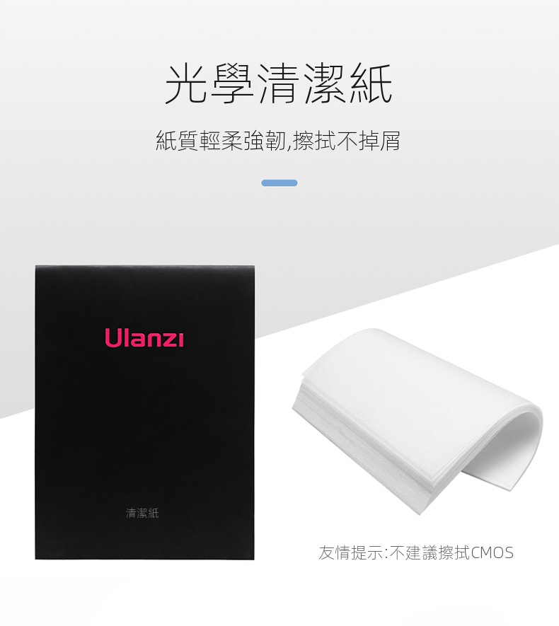 • 光学清潔紙,輕柔強韌,擦拭時不會掉屑。