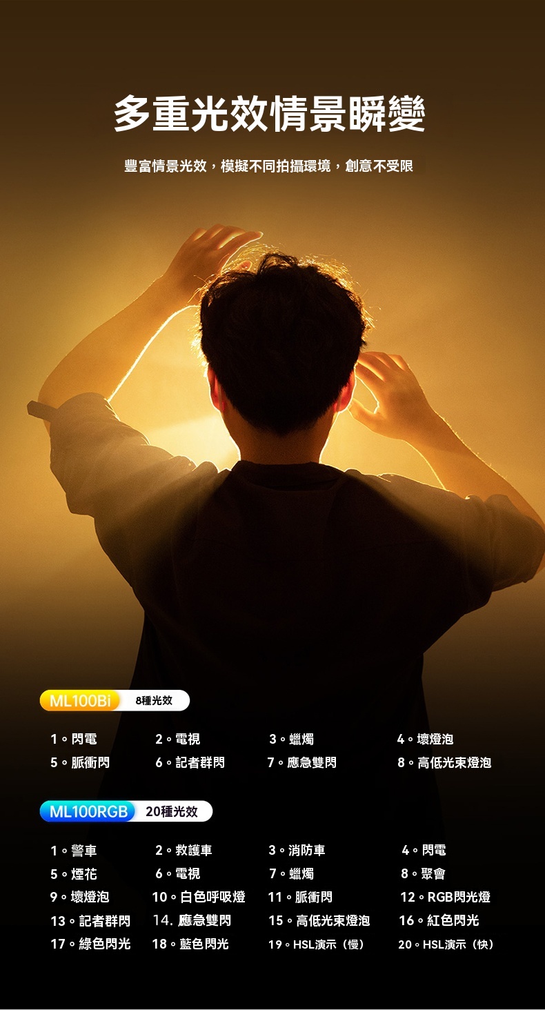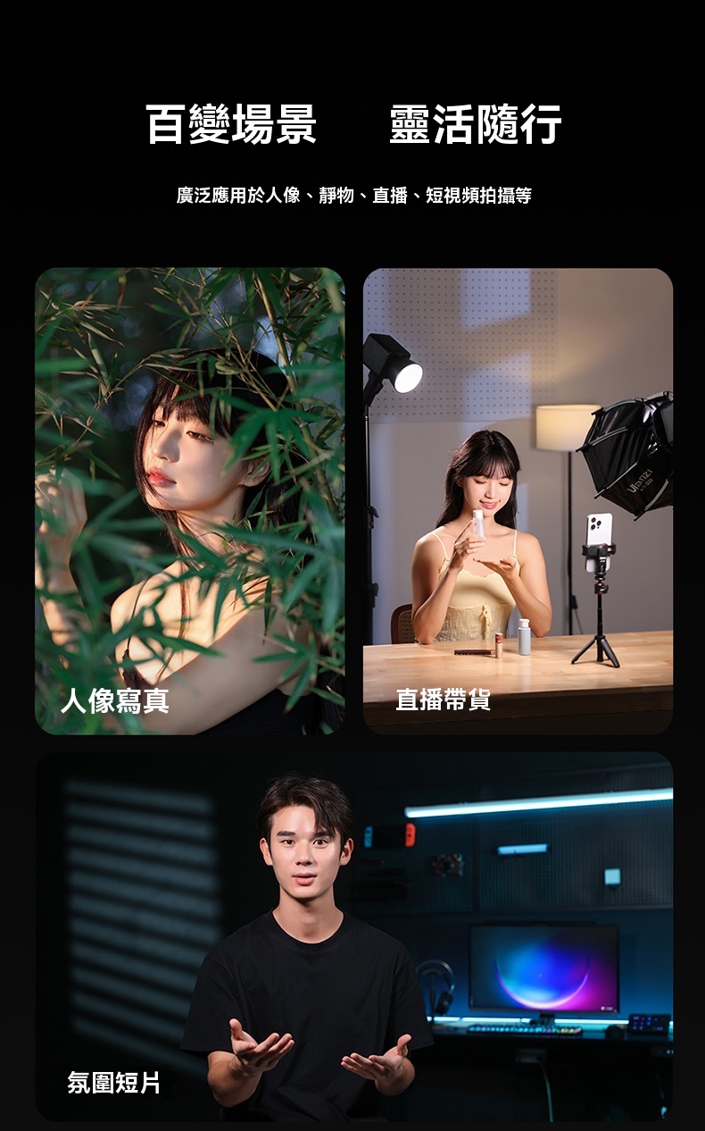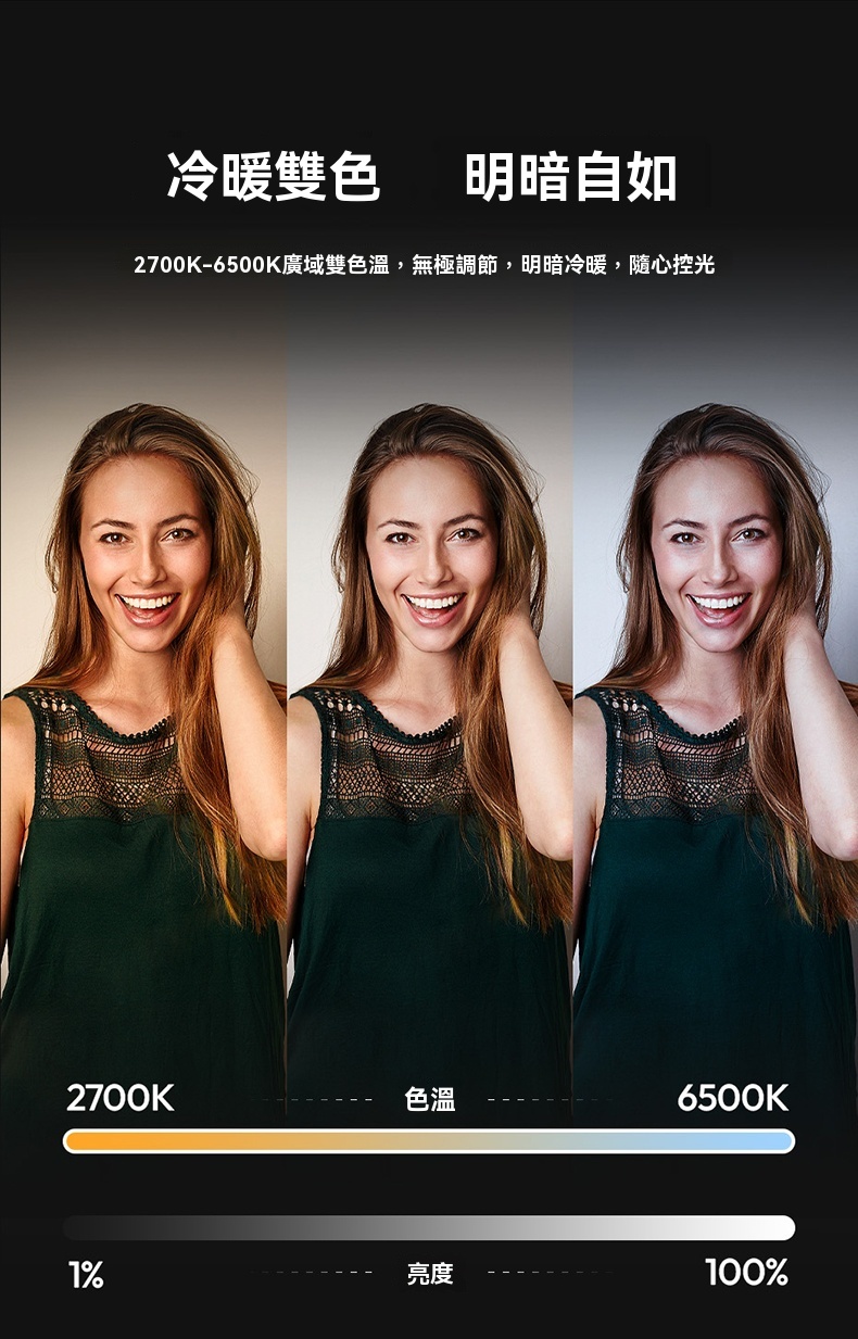 • 雙色溫精控:冷暖色溫精準調節,範圍廣,能依場景氛圍調出適配色溫,如人像攝影中的膚色光。