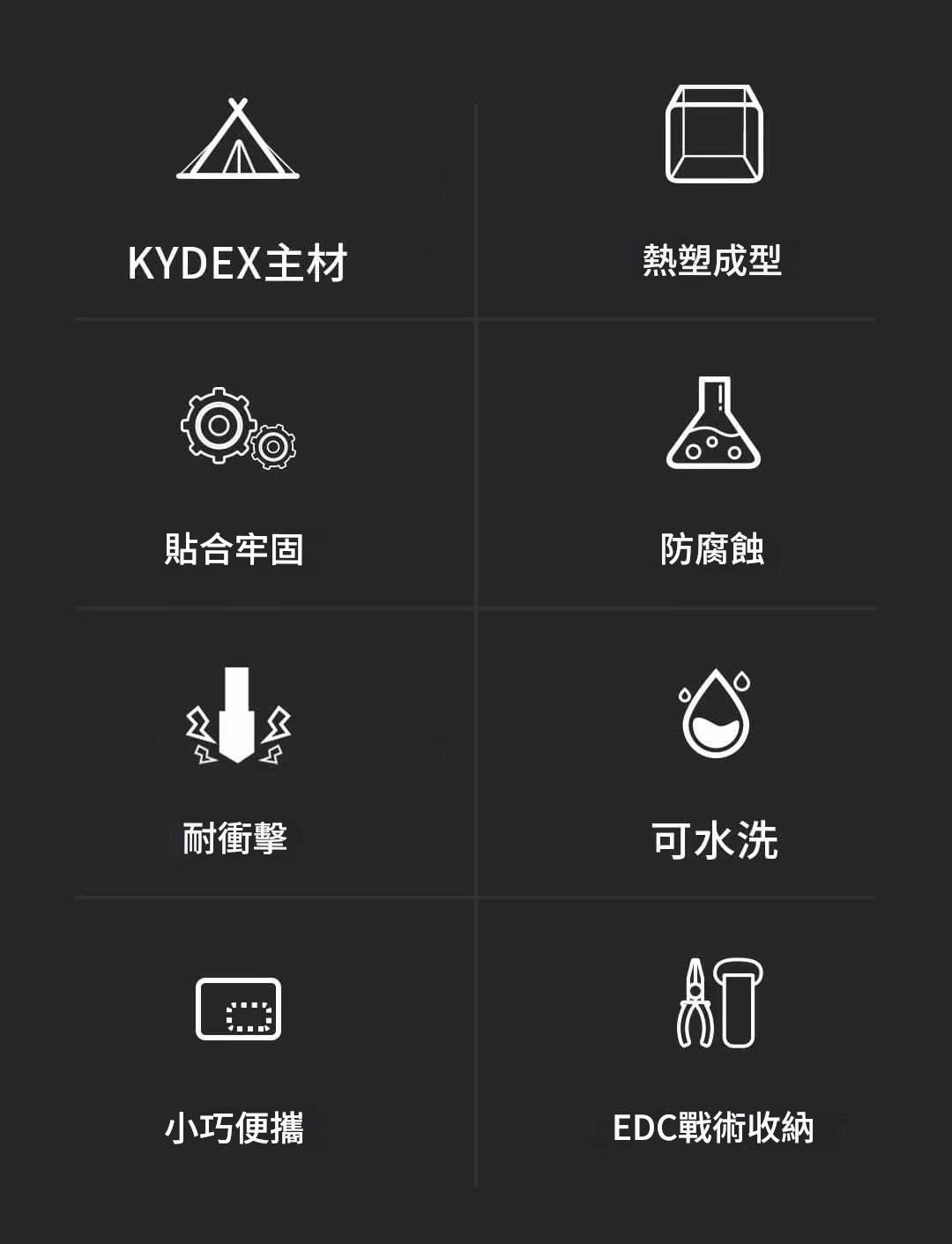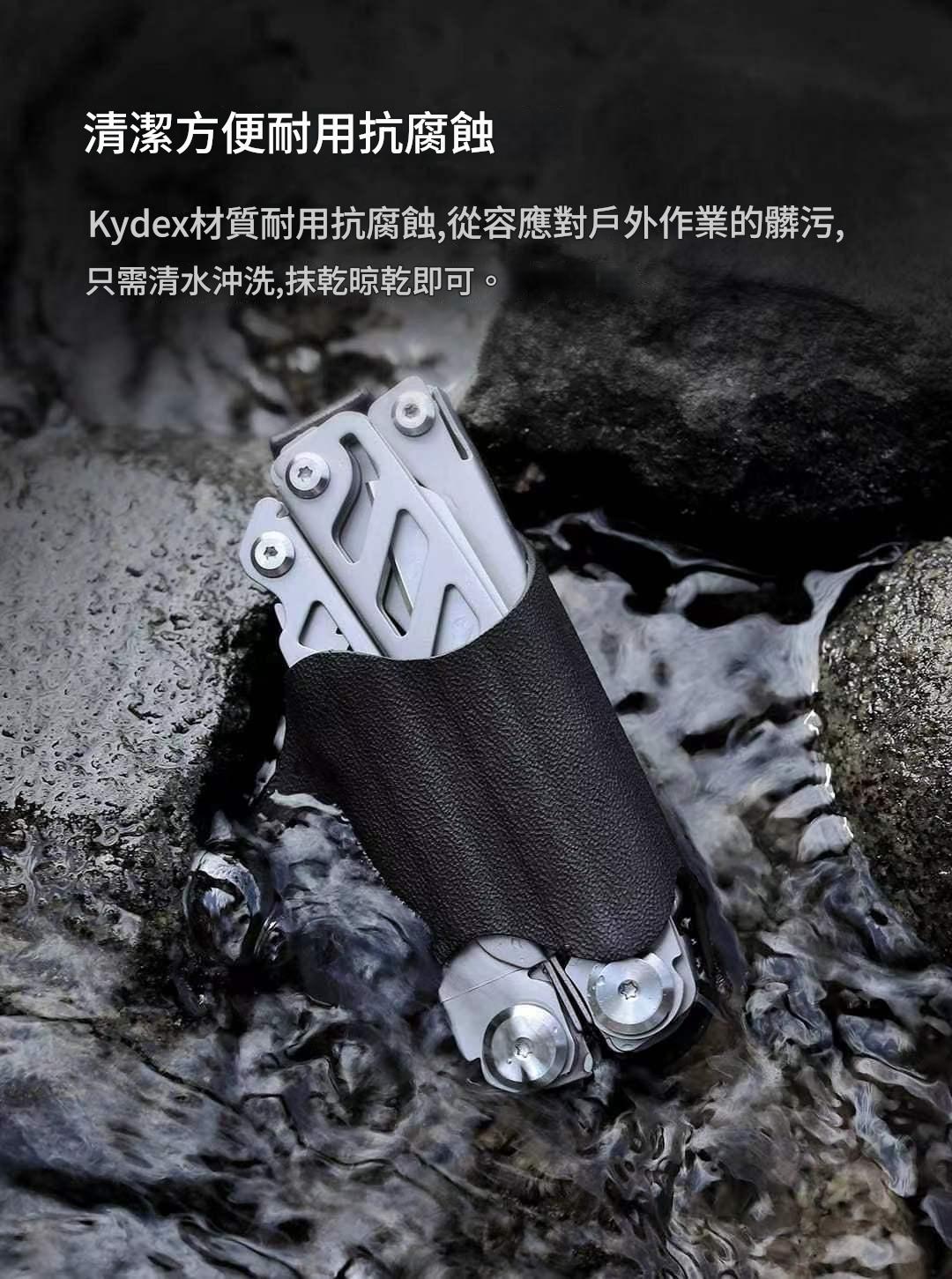 • 使用1.5mm厚的Kydex熱塑硬板進行塑形,保證與工具鉗精細貼合。