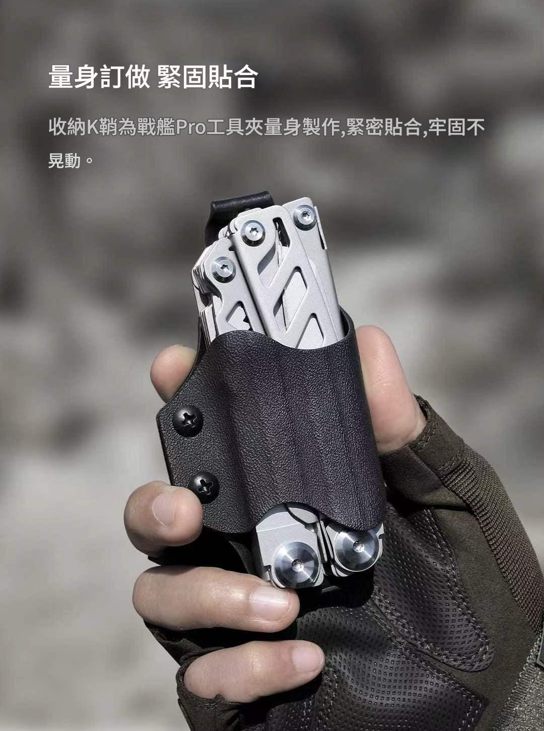 • 量身打造緊固貼合收納K鞘,為戰艦Pro工具鉗量身製作,緊密貼合,牢固不晃動。