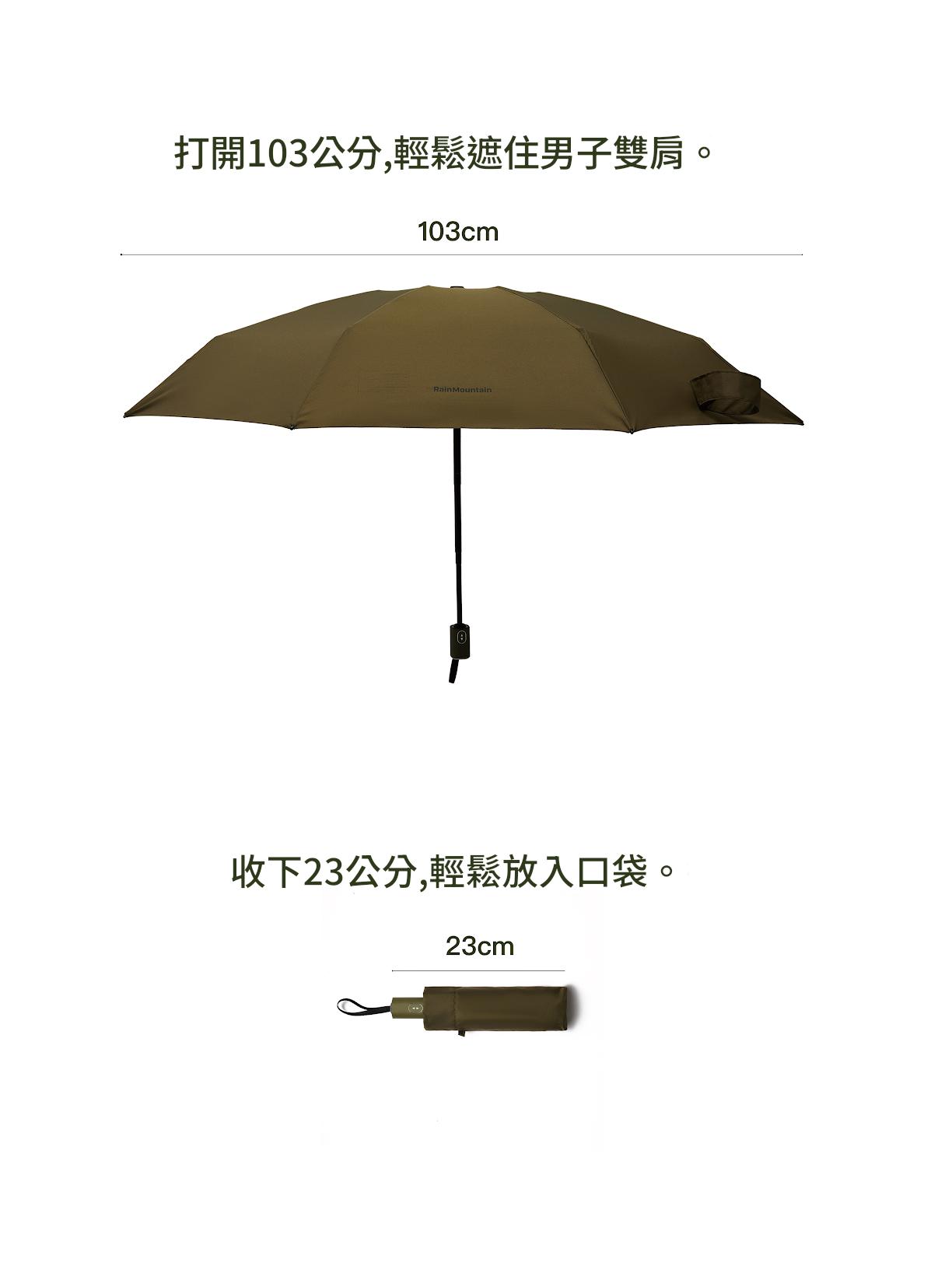 RainMountain 輕量四折口袋自動傘 - 軍綠色 | 打開103cm | 小巧收納