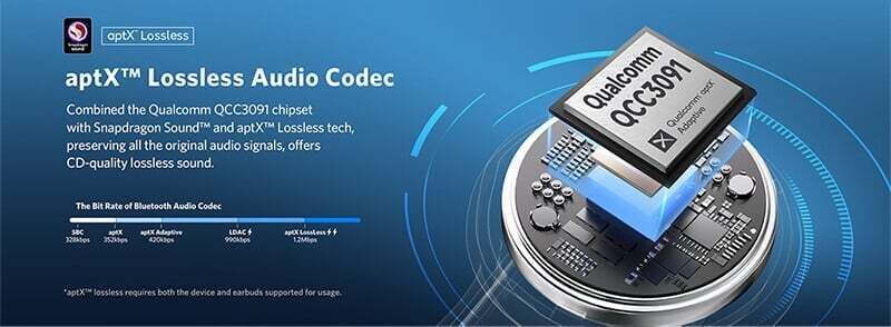 • 瞬間配對:Bluetooth 5.4 + aptX™ 無損技術的 Qualcomm® QCC3091 SoC
