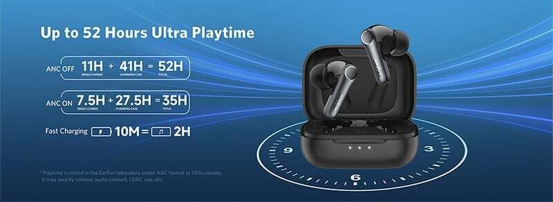 • 電池續航力:耳機單次播放時間:11 小時(關閉 ANC),7.5 小時(開啟 ANC);充電盒額外提供 41 小時