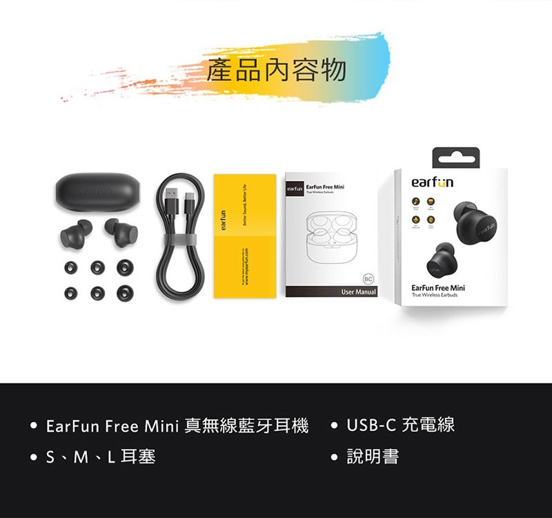 EarFun Free Mini 運動防水真無線耳機 - 黑色 | 超強低音 | 久戴舒適 | 香港行貨