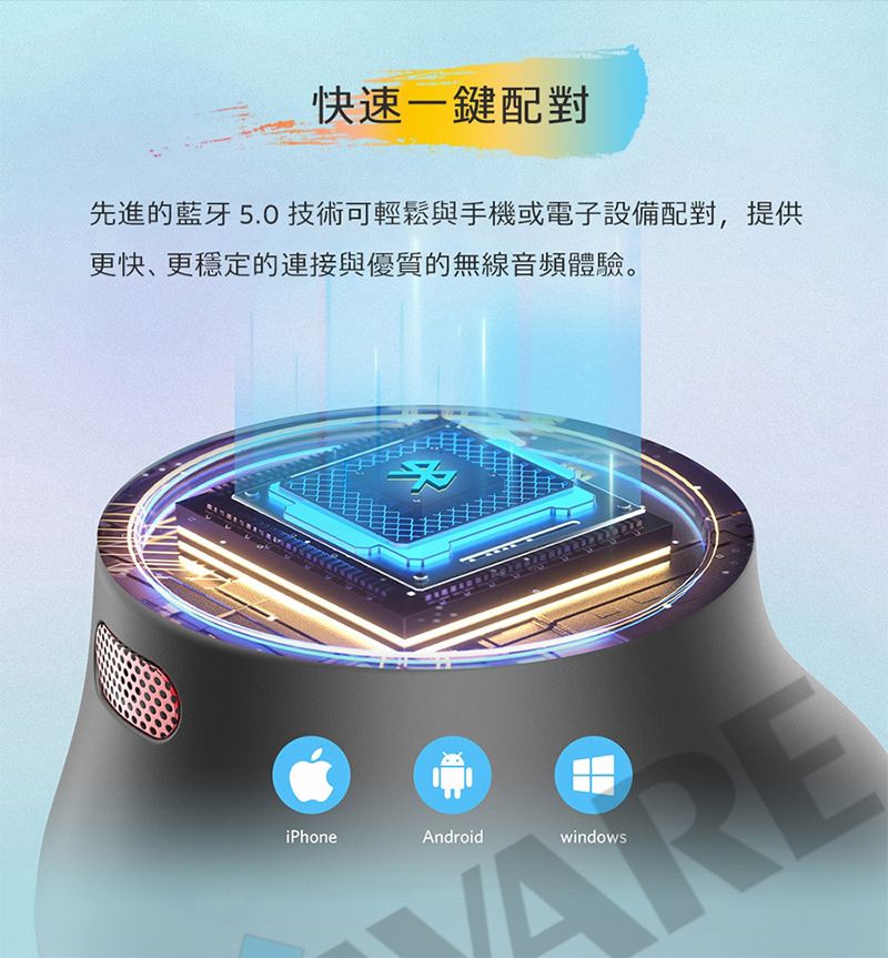 • 快速配對:藍牙5.0,連接快速穩定,功耗更低