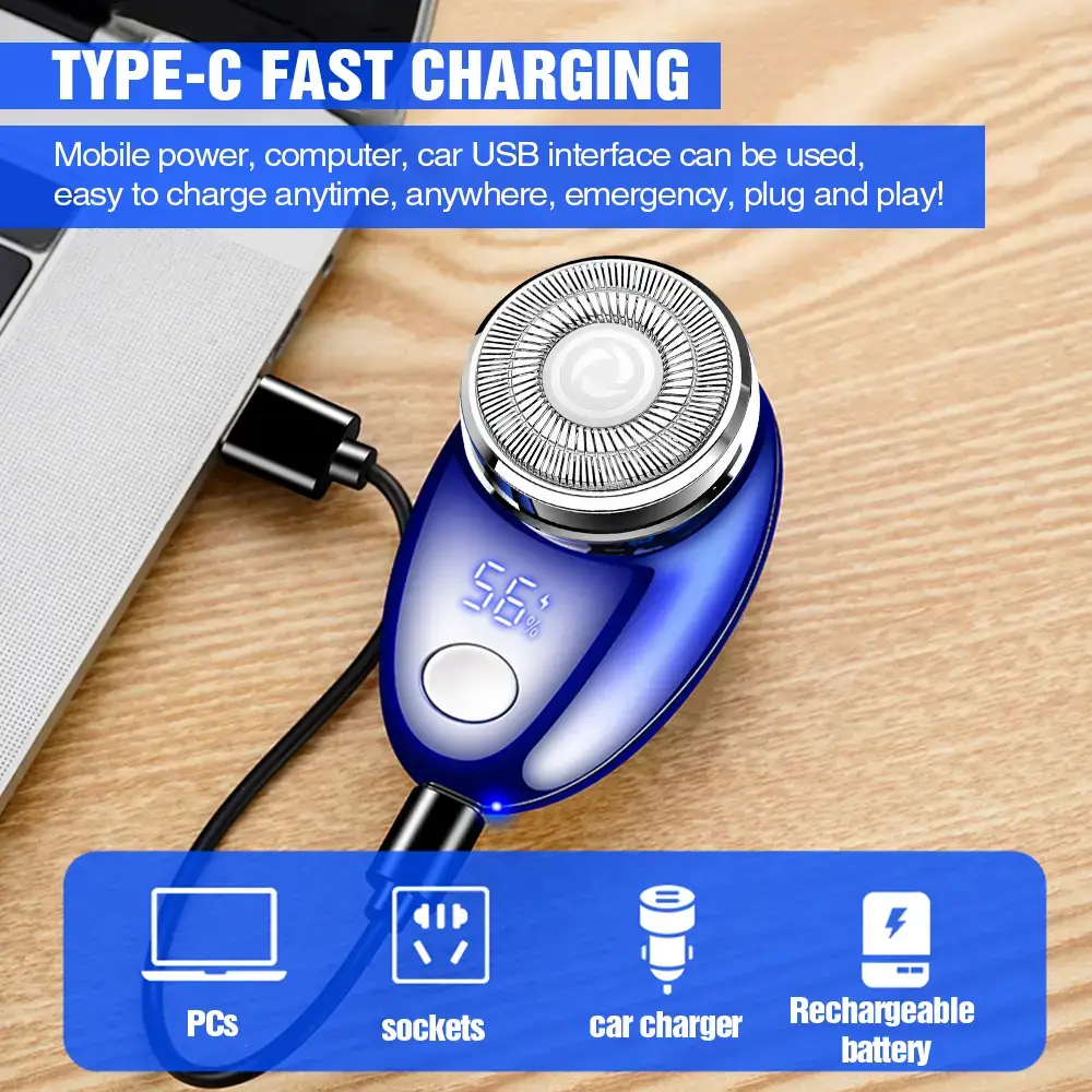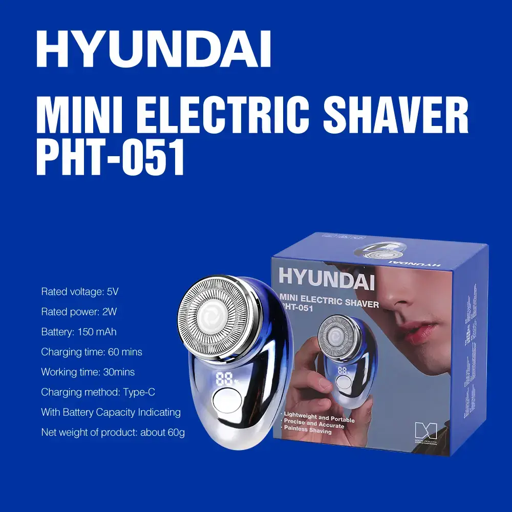 Hyundai PHT051 迷你電鬚刨 - 藍黑色 | 旅行必備電動剃鬚刀 | 電池容量顯示 | Type-C充電 | 香港行貨
