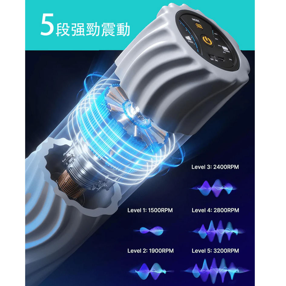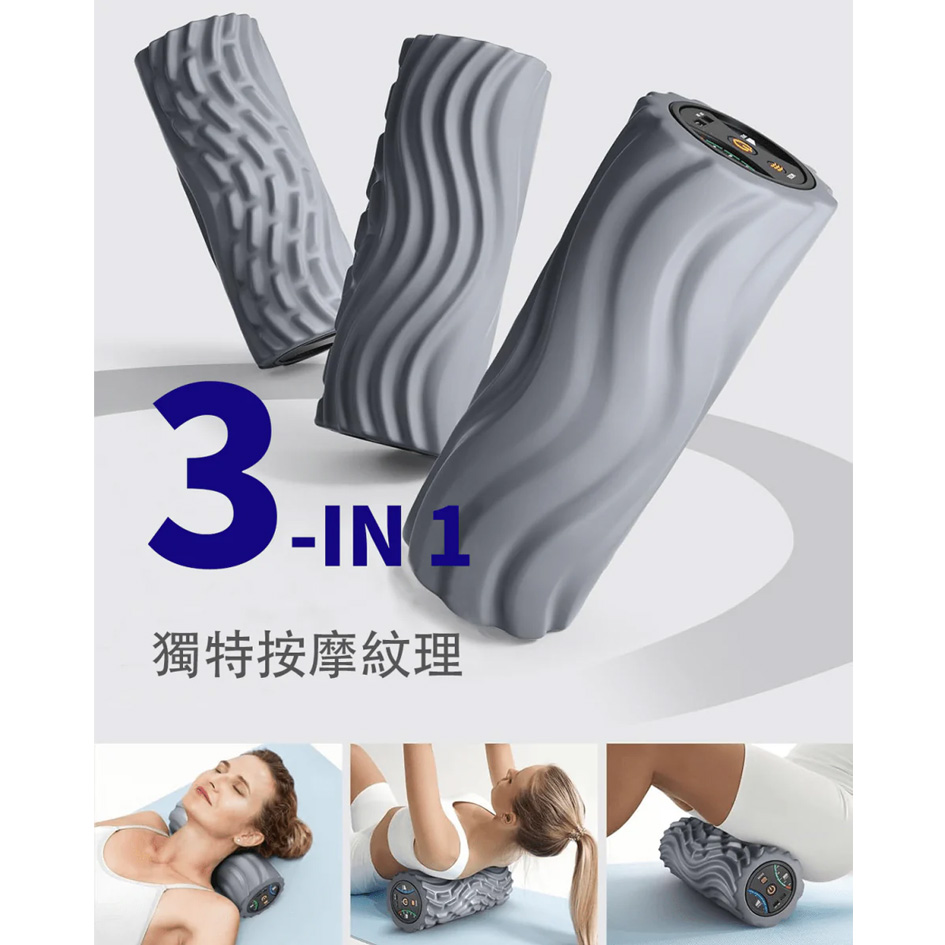 • 波浪形滾軸,三種密度波紋設計,深層按壓筋膜