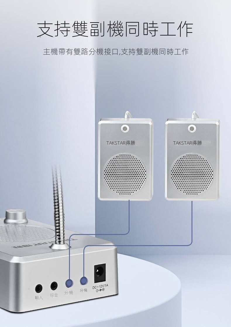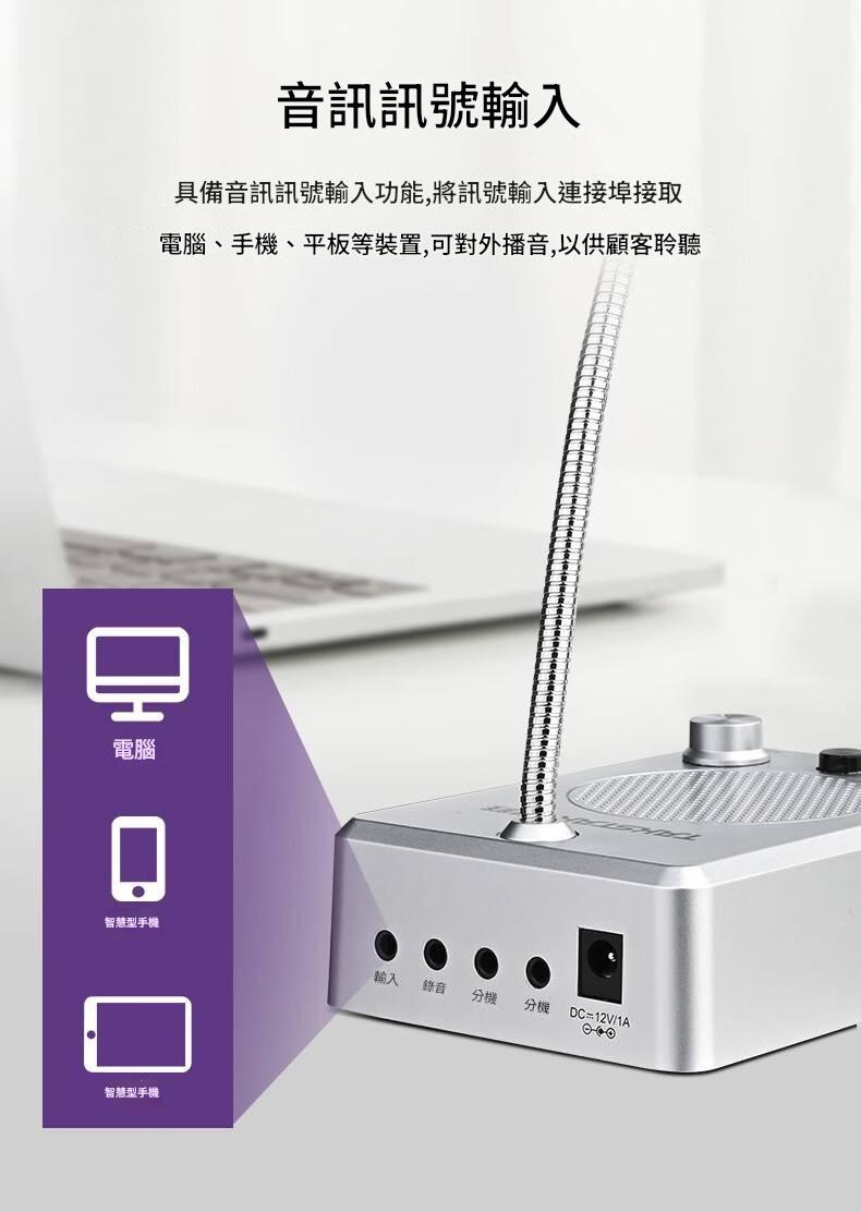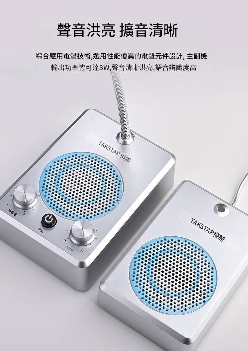 得勝 TAKSTAR DA235M 視窗櫃位對講機 ,具備全自動通話控制、雙分機接口及立體聲插座輸出,支持高清錄音與3W輸出功率。內建高性能音頭,靈敏度高、噪音低,音質清晰自然。支援音頻信號輸入,可連接電腦、手機等設備進行外播。適用於銀行、證券、郵局、火車站、交款台、售票處、醫院等場所。