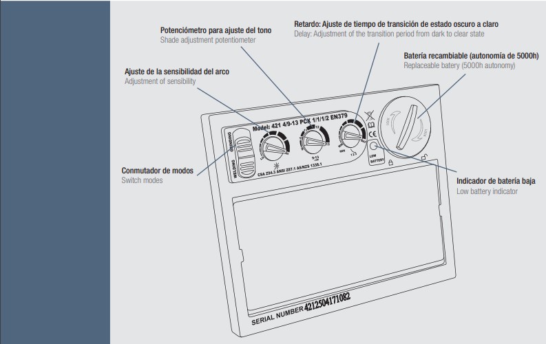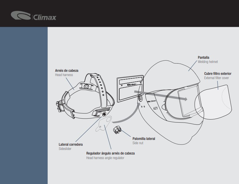 西班牙Climax 420 電子變色燒焊面罩是一款高級自動焊接保護罩,適用於大多數類型的焊接,包括MIG,TIG和等離子切割和焊接(不適用於激光或氣體焊接)。焊鏡頭帶可手動調節,頭帶設計亦易於單手調節。