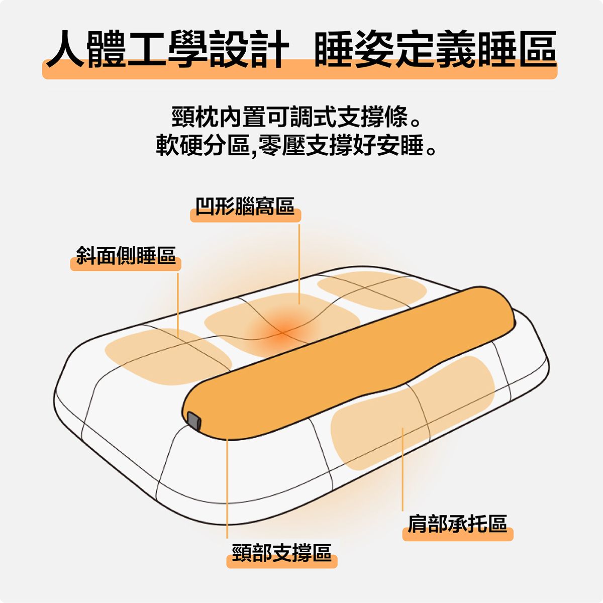 • 頸枕內含有可調色支撐條貼合頸部曲線弧度承托避免頸椎懸空