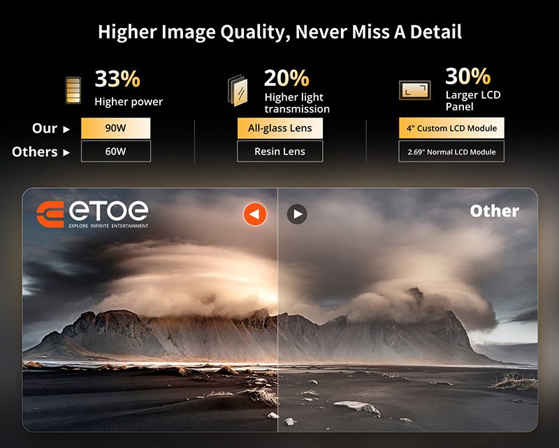 ETOE E3 Pro是一款搭載Android TV系統的1080P投影儀,能帶來清晰細緻的畫面顯示,讓使用者享受高畫質視覺體驗。搭載的Android TV系統,擁有豐富的應用資源,滿足用戶多樣化的娛樂需求。具備智慧對焦和梯形校正功能,能快速呈現方正清晰的畫面。支援無線投屏,方便連接各類智慧型裝置。無論是用於家庭劇院觀影,或是辦公室展示,都能提供出色的使用體驗。