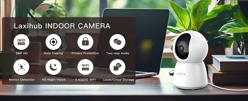 Laxihub P4F 是一款功能強大的室內雲台無線攝影機。它擁有 5MP 感光元件,可實現 QHD 3K 超高清畫質,能清晰捕捉室內每個細節。 360 度全景雲台設計,可水平垂直靈活轉動,監控無死角。具備紅外線夜視功能,即使在黑暗環境也能提供清晰畫面。支援雙向語音對講,方便與室內人員溝通。還有行動偵測、警報推送等智慧功能,搭配雲端儲存和本地存儲,方便錄影回放,是家庭安防與遠端監控的理想選擇。