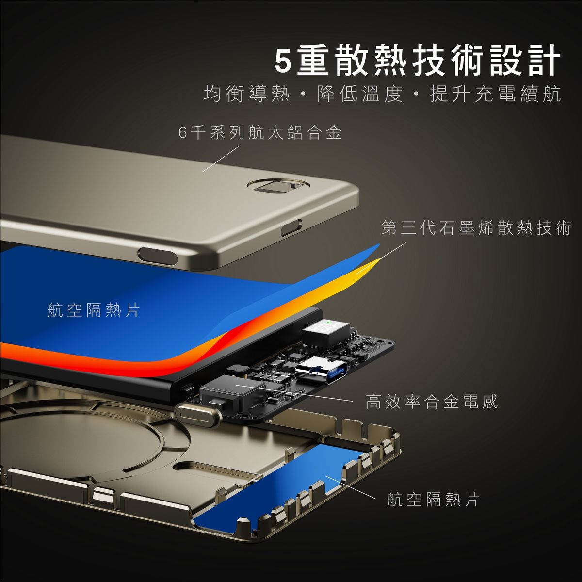 • 5重散熱技術:高效導熱·降低溫度·提升充電續航