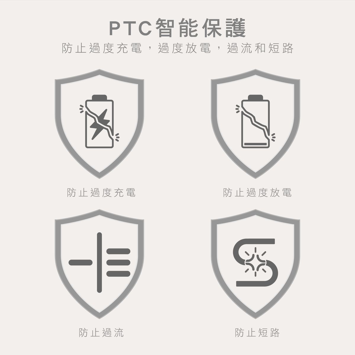 • PTC智能保護,防止過度充電,過度放電,過流和短路