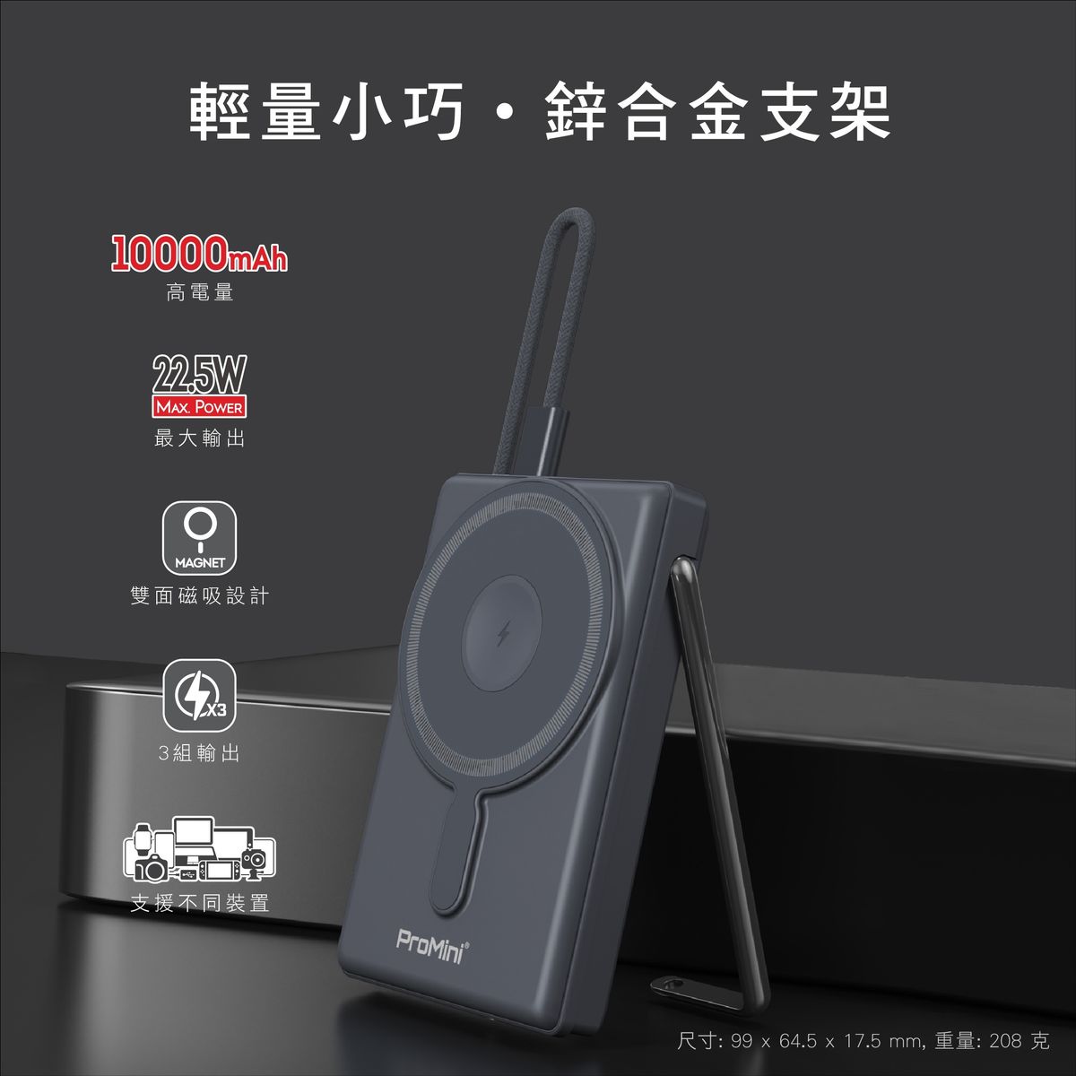 ProMini 10MW+ 10000mAh 磁吸3合1無線快充流動電池-白色 | 支持iPhone/Watch/Airpods無線充 | 連支架 | 香港行貨