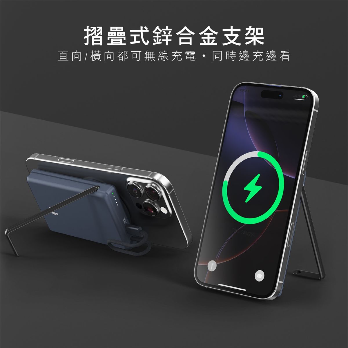 • 兼容MagSafe磁吸護殼,摺疊式支架,同時邊充邊看