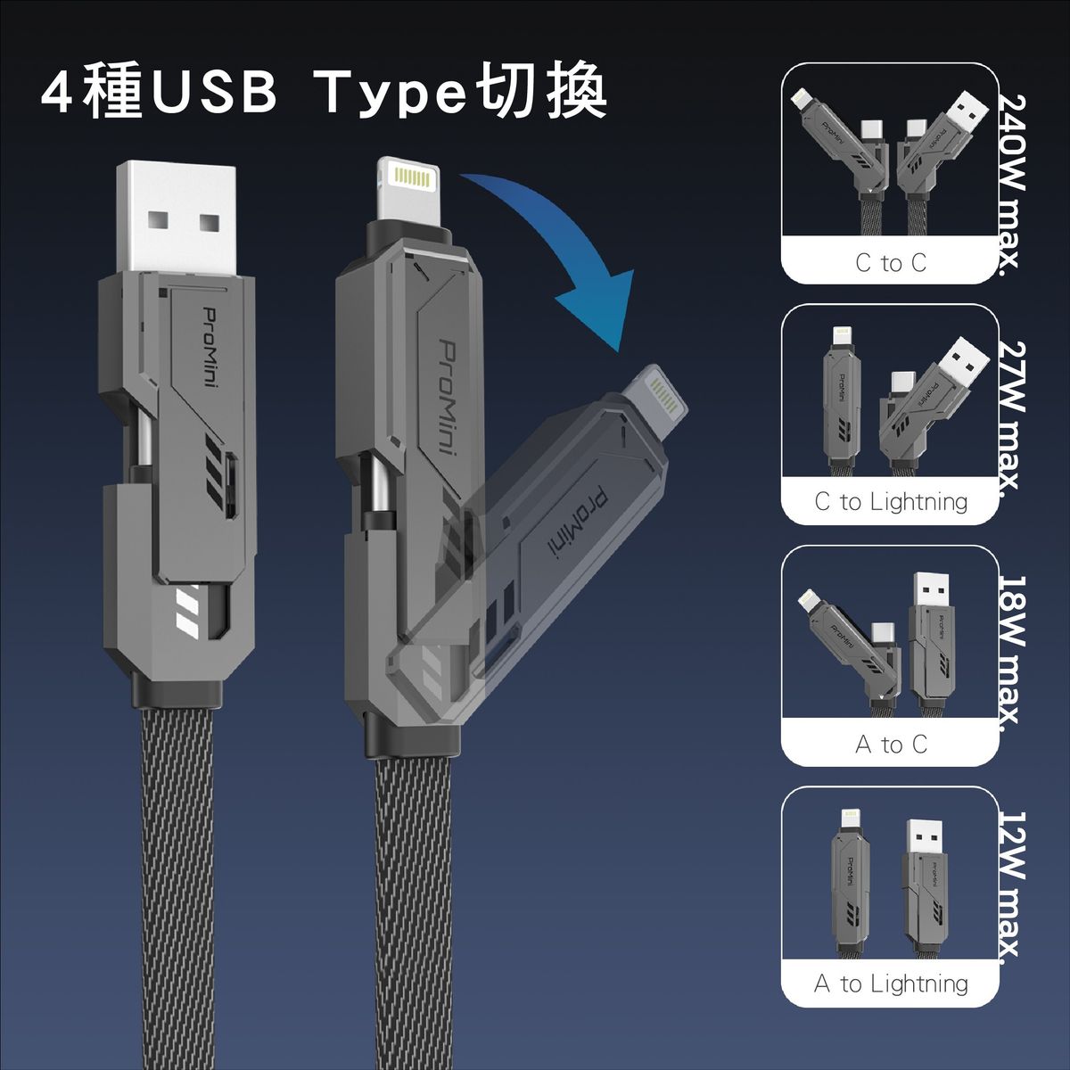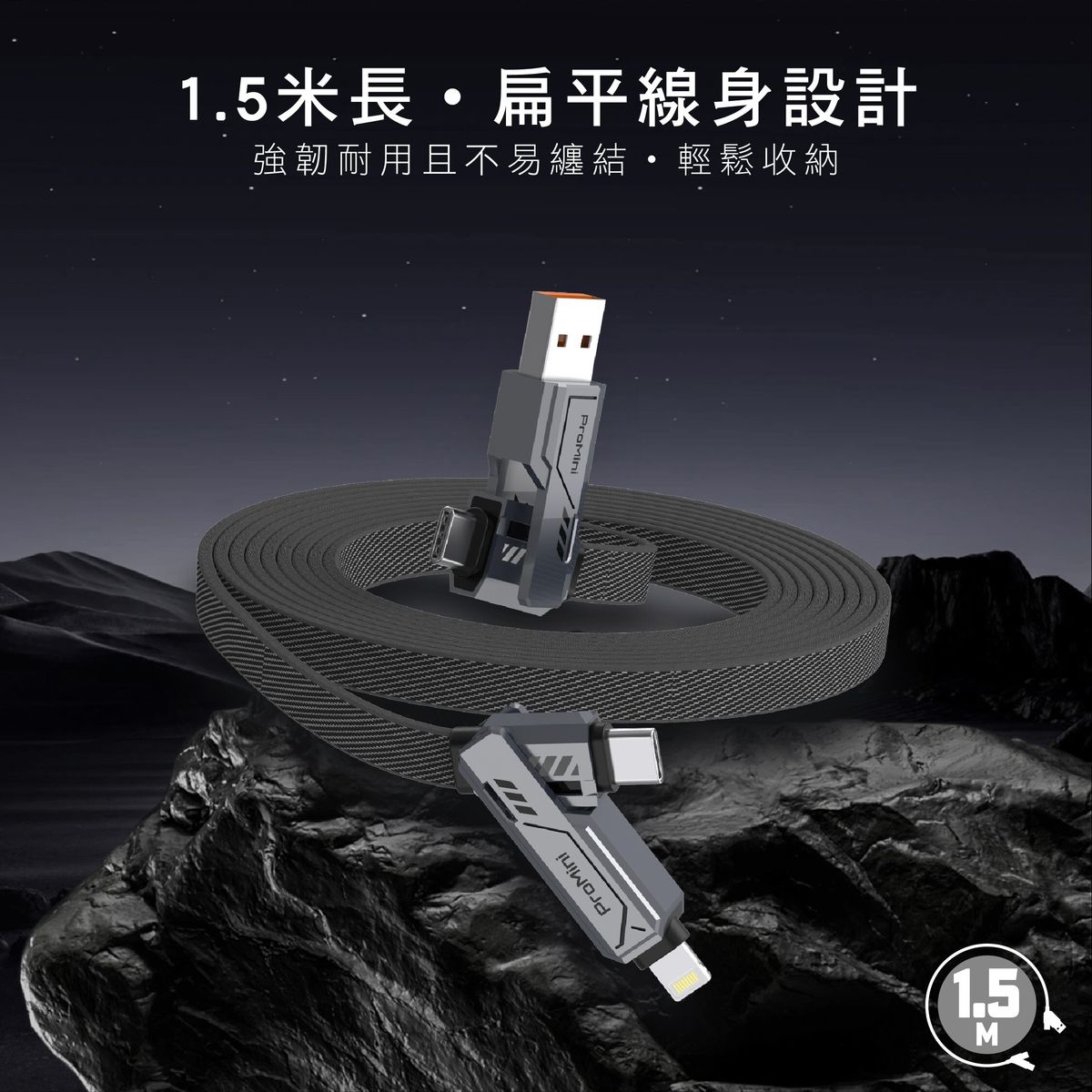 Buy ProMini 240W四合一機甲型快充傳輸線 | 鋅合金外殼 | 強韌尼龍纖維扁平線身 | 香港行貨 | 兩年原廠保養 price in outletexpress .com Hong Kong.In promotion and sale.