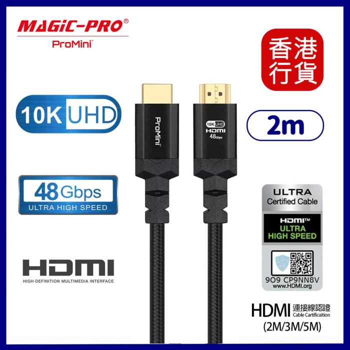 ProMini 10K HDMI 2.1超高速連接線-2M | 支持所有HDMI 2.1功能 | 48Gbps頻寬 | 香港行貨