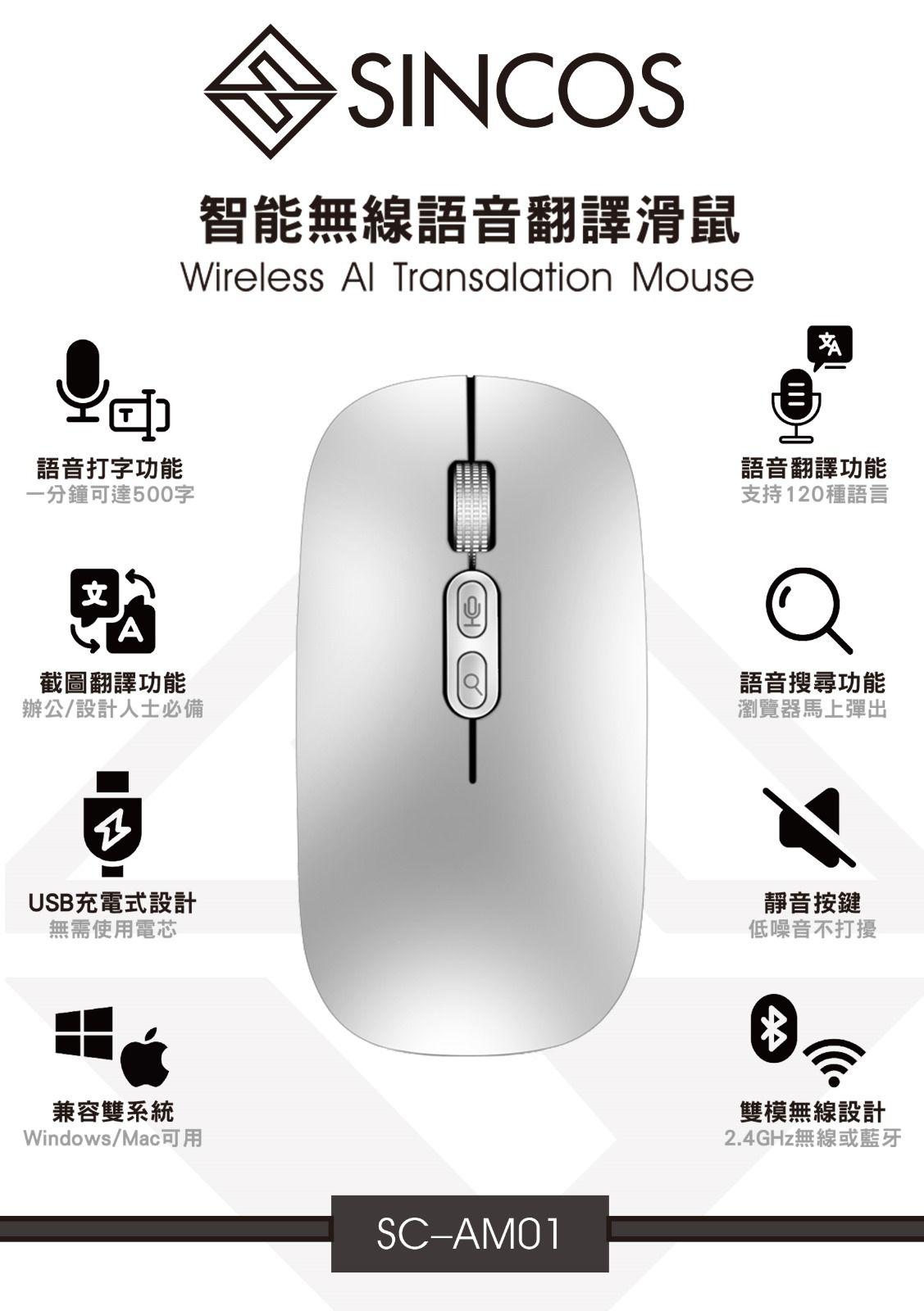 Buy SINCOS SC-AM01 智能無線AI翻譯滑鼠 - 銀色 | 支持截圖翻譯 | 2.4GHz + 藍牙雙模式 | 語音打字功能 | 香港行貨 price in outletexpress .com Hong Kong.In promotion and sale.