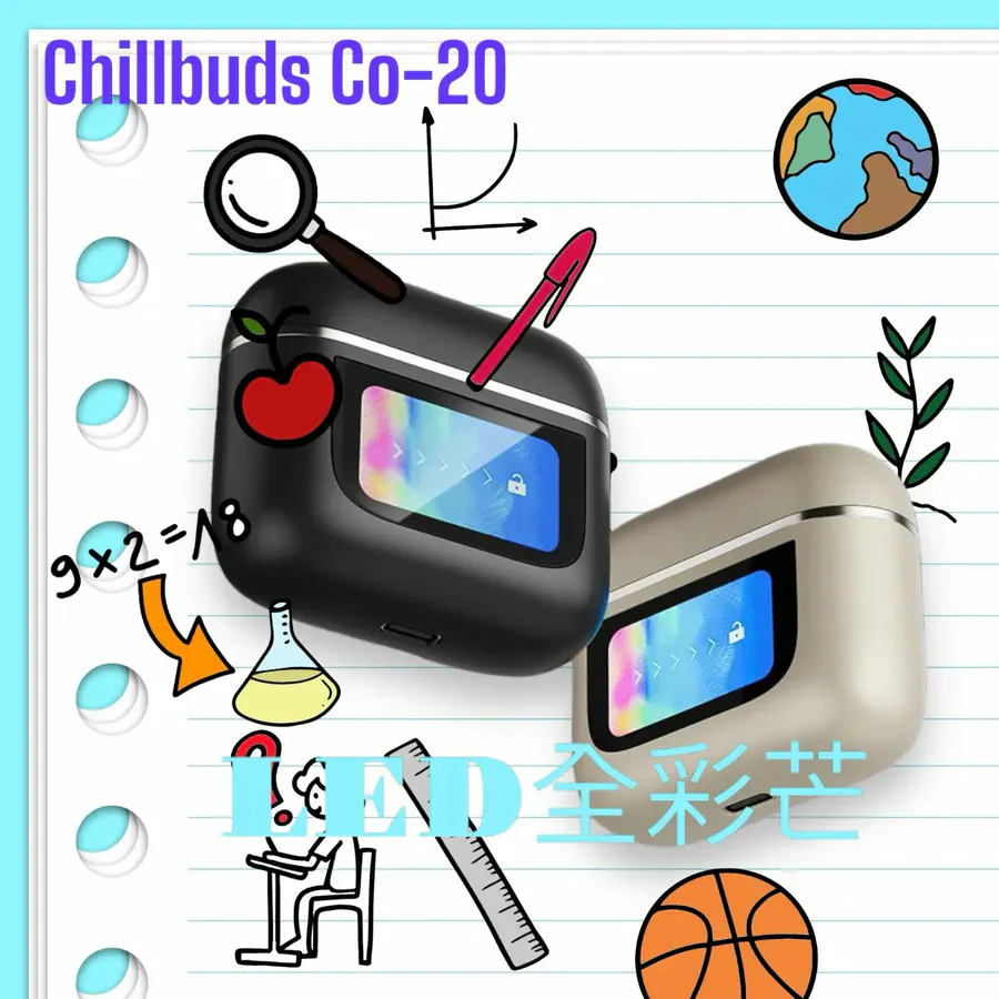 CHILLBUDS CO-20 全彩輕觸式螢幕真無線藍牙耳機核心亮點在於 LED 全彩觸控螢幕充電盒,不僅支援輕觸操作,還可調整音量、控制降噪模式,更能自訂更換壁紙,兼具實用性與個人化。效能配置紮實,搭載藍牙 5.3 技術,確保連接穩定流暢;擁有 - 35dB 深度降噪(ANC)與環境音(AMBIENT SOUND)功能,可根據不同場景靈活切換;內置複合膜喇叭單元,配合 360°ACS 全景與定向傳聲技術,音效能呈現清晰立體聲的聽覺效果。續航與耐用性表現出色,總續航力長達 32 小時(耳機 8 小時 + 充電盒 24 小時),滿足日常長時間使用需求;支援 Type-C 介面充電,充電便捷高效,同時具備 IPX5 防水等級,可應對日常出汗、濺水等情況,使用場景更廣泛。