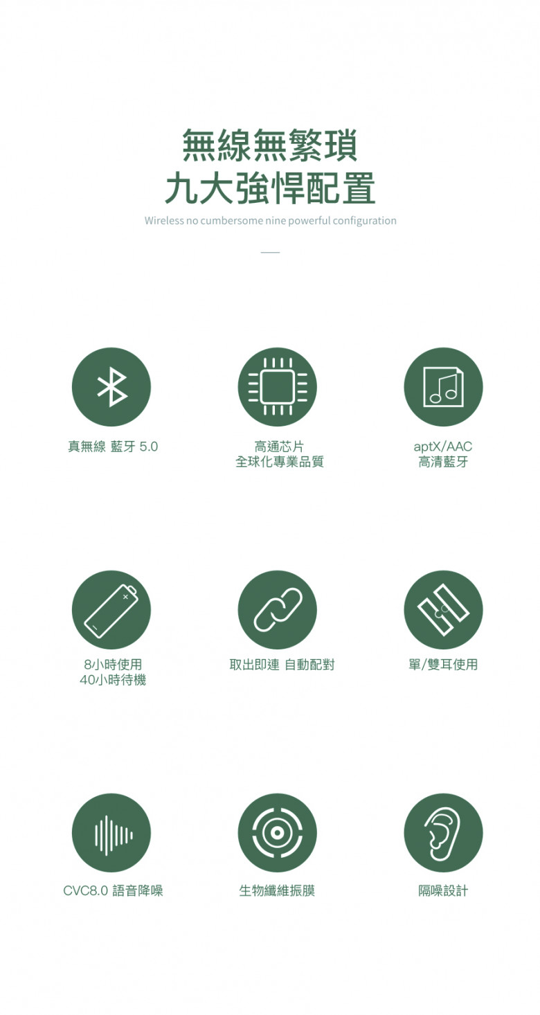 • 充電盒充電時間約60分鐘,可為耳機充5-8次電