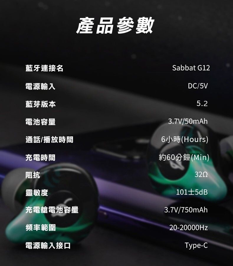 Sabbat G12 ELITE是潮流亮眼的真無線入耳式電競藍牙耳機。它搭載藍牙5.0技術,訊號傳輸穩定,無遮蔽環境下傳輸距離可達10米,搭配高通晶片,帶來流暢使用體驗。其配備10mm動態驅動單元,支援AAC、SBC等音訊解碼,音質經專業調校,低音強勁,可呈現清晰音效細節。遊戲模式下實現40ms超低延遲,精準捕捉遊戲音效,幫助你沉浸電競世界。內建麥克風搭配CVC降噪技術,通話清晰無幹擾,左右耳可獨立使用。 750mAh充電盒提供長效續航,支援無線與有線雙充電方式,滿足多元需求。