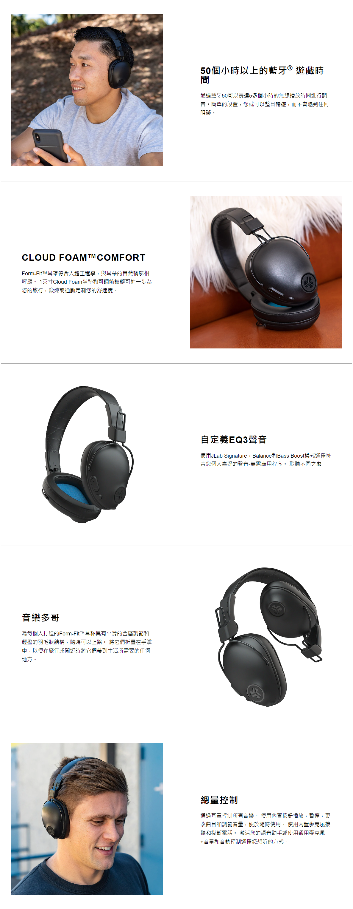• CLOUD FOAM™COMFORT:Form-Fit™耳罩符合人體工程學,與耳朵的自然輪廓相呼應。 1英寸Cloud Foam坐墊和可調節鉸鏈可進一步為您的旅行,鍛煉或通勤定制您的舒適度。