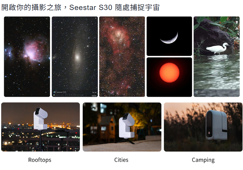 ZWO Seestar S30 智慧天文望遠鏡 | Sony IMX662 感光元件 | 雙鏡頭一鍵切換 | 磁吸太陽減光濾鏡