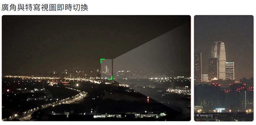 • 感應器:遠攝IMX662 廣角鏡頭專用感光元件