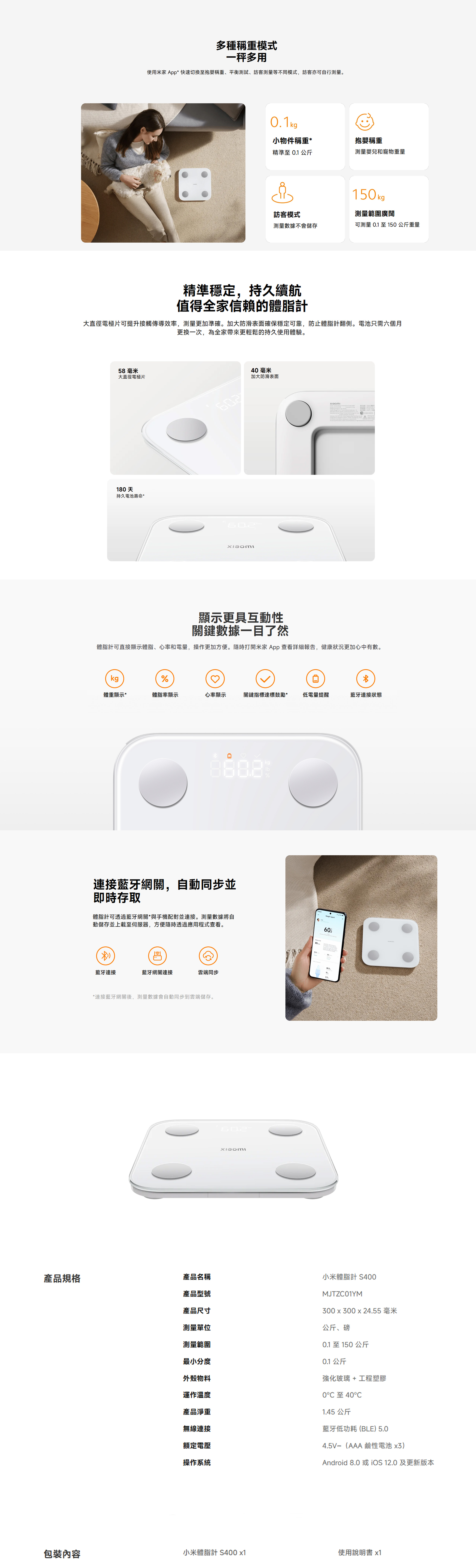 Outlet Express HK 生活百貨城在香港觀塘提供 XIAOMI BHR7793GL S400 體脂秤 - 白色 | 雙頻精準測量 | 25項身體指標分析 | 平行進口 在那裡買邊到買或邊度買代理資料及價錢實惠借批發優惠以及公司學校報價,更可送到香港或澳門而部份產品比團購更優惠,更可以為你推薦推介相似產品及優點缺點,請留意我們最新產品價格更新。