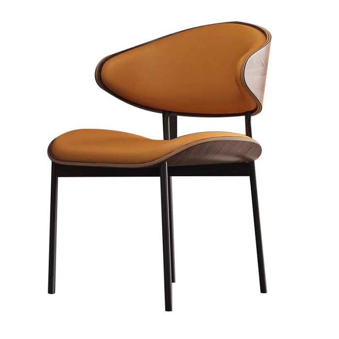 意式極簡藝術餐椅-橙色 | 環保耐磨皮 | 黑色碳素鋼支架 | 靠背弧形包裹