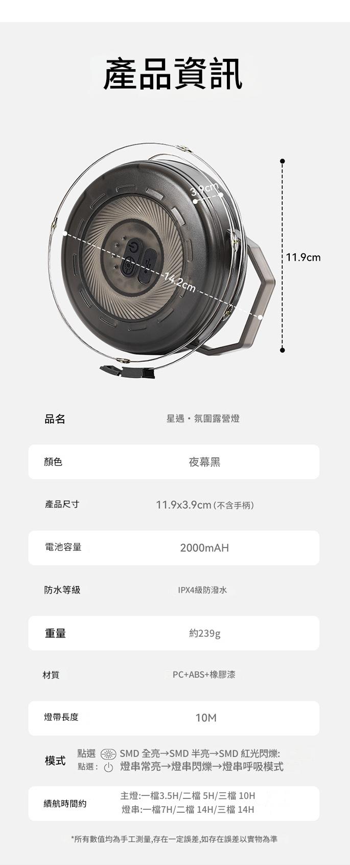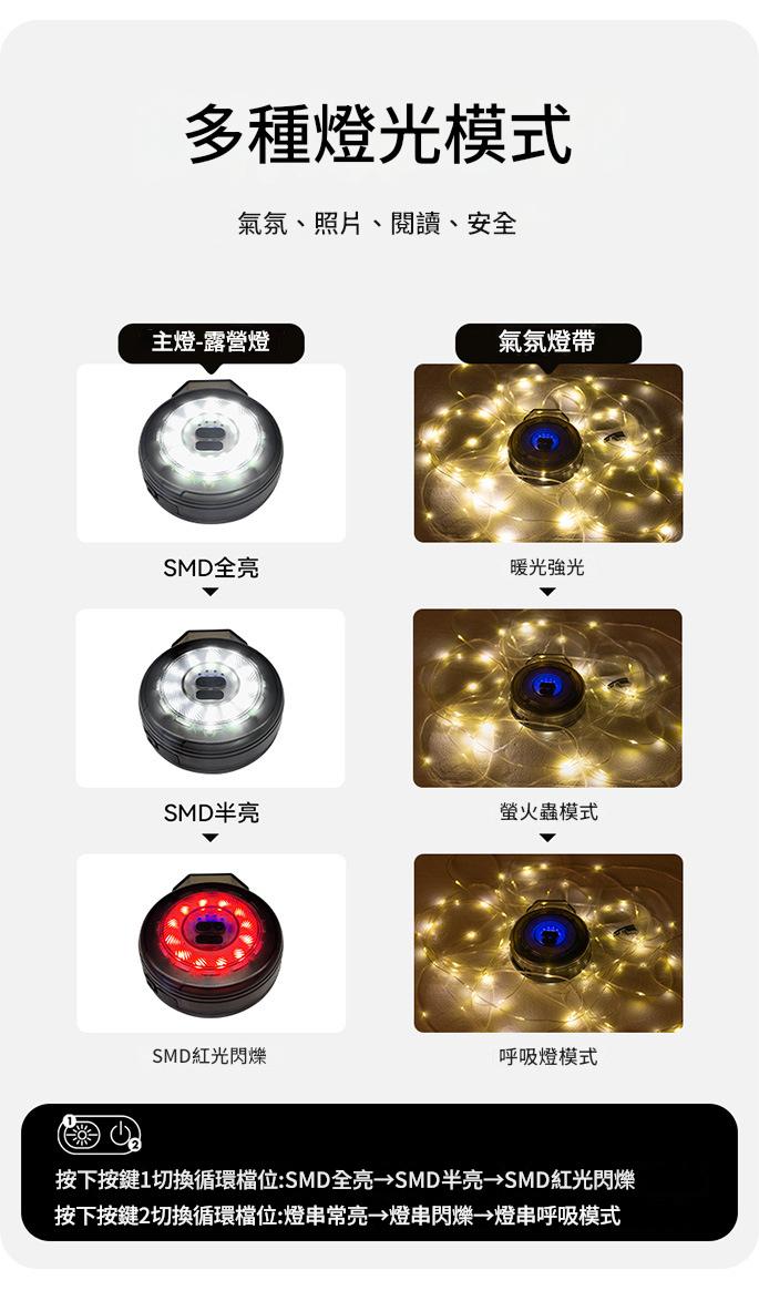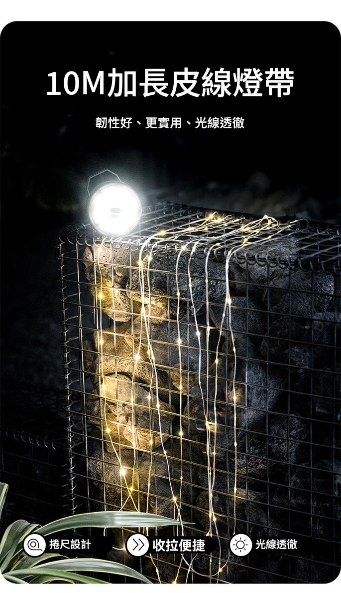 想要為露營增添夢幻氛圍?這款 BLACKDOG 星遇氛圍露營燈帶(CBD2450ZM017)絕對是不二之選。燈帶長達 10 米,輕鬆覆蓋大空間。採用捲尺式手搖收納設計,有效解決燈串易打結的煩惱,收納攜帶超便捷。它具備多種燈光模式,輕按即可實現 SMD 全亮、半亮、紅色閃爍等效果切換,還能讓燈串常亮、閃爍或呈現呼吸模式,滿足不同場景需求。燈體為時尚的黑色,展現高級質感。具備 IPX4 級防水性能,無畏戶外風雨。其內建 2000mAh 電池,續航給力,Type-C 充電介面支援邊充用,輕鬆應對長時間露營。趕快帶上它,為你的露營時光打造專屬浪漫氛圍 。
