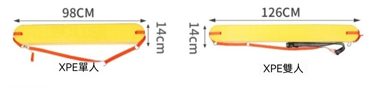 XEP單雙人遊水輔助浮力棒,是水上運動的得力助手。它採用XPE材質製作而成,具有出色的浮力,單人款浮力150N,雙人款浮力220N,能輕鬆承載使用者重量 ,適用於海灘救生、水樂園救生、游泳池救生以及長途游泳等涉水救生活動。單人款尺寸為98*14厘米,雙人款為124*14厘米 。顏色為艷黃色,十分醒目。其手感細緻柔軟,對肌膚無傷害。無論是游泳初學者用來練習,還是專業人士用於輔助訓練,又或是作為緊急救援設備,這款浮板都表現出色,為水上安全保駕護航 。