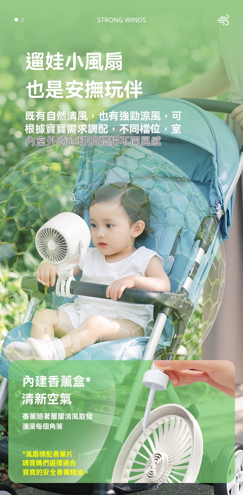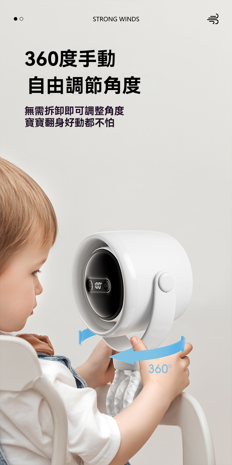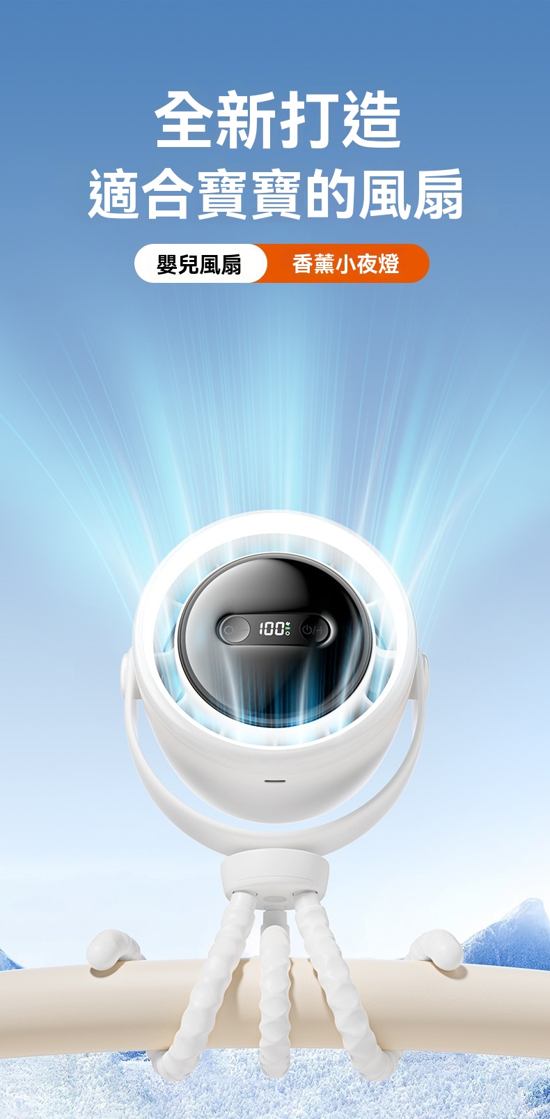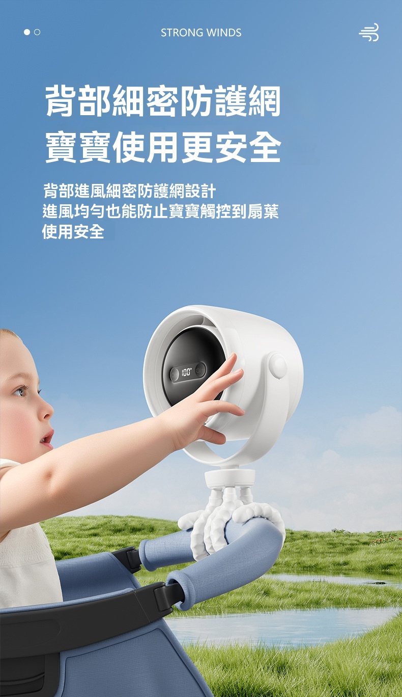 夏日帶娃出行,寶寶總被悶熱困擾?這款嬰兒車可用八爪魚靜音變頻循環扇來解救!它採用柔韌矽膠八爪魚支架,可隨意彎曲,能輕鬆固定在嬰兒車、床頭、餐椅等各處,實現360°無死角送風。搭載大容量新能源同材電芯,充飽電後可持續運轉15小時以上,週末郊遊、長程出行不怕斷電。支援100檔無極調節,從輕柔微風到強勁涼風隨心切換,精準適配不同場景需求。無葉設計搭配細密網罩,防夾手較安全。運轉時超靜音,不擾寶寶安睡。有了它,寶寶夏日出遊盡享清涼。