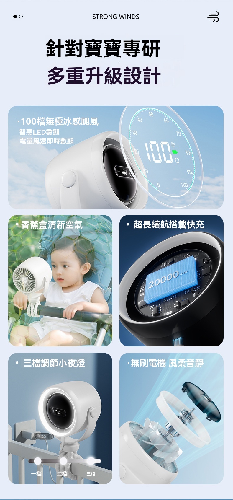 Buy 嬰兒車可用八爪魚靜音變頻循環扇 - 白色(10000mAh) | 附小夜燈香薰盒 | 100檔無級風力調節 price in outletexpress .com Hong Kong.In promotion and sale.