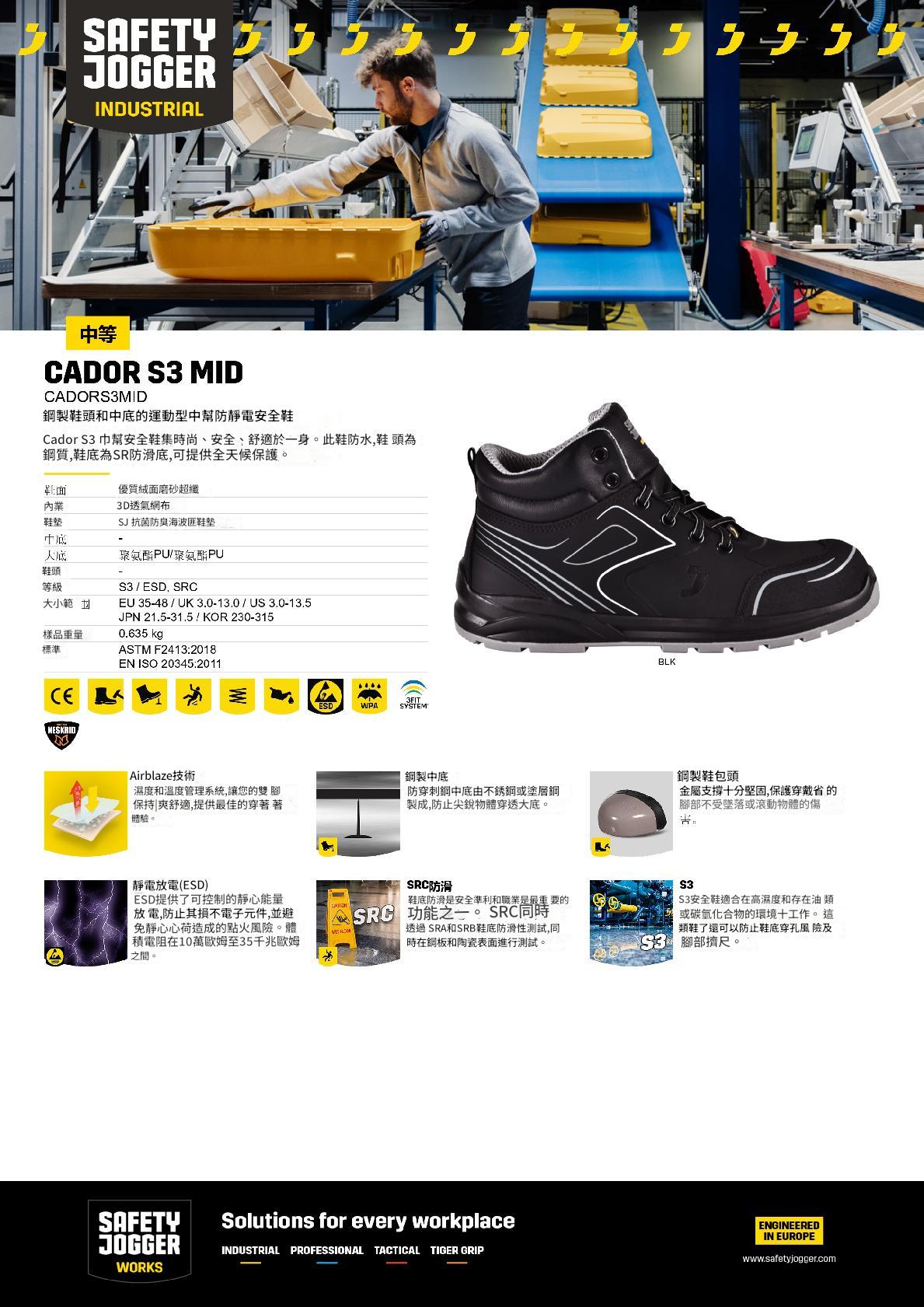 Buy SAFETY JOGGER CADOR S3 MID 011276 鋼頭中筒安全鞋(黑色) - 43碼 | SR 防滑底 | 雙密度PU大底 | SJ 抗菌防臭鞋墊 | S3安全標準 price in outletexpress .com Hong Kong.In promotion and sale.