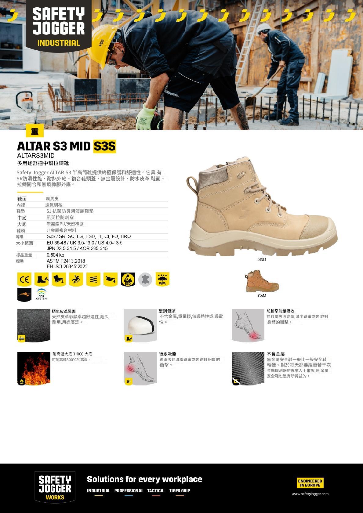 Buy SAFETY JOGGER ALTAR S3 MID 011329 多用途中筒拉鍊安全靴(駝色) - 40碼 | 前後脚吸能 | 塑鋼鞋頭 | PU+耐300°C橡膠大底 price in outletexpress .com Hong Kong.In promotion and sale.