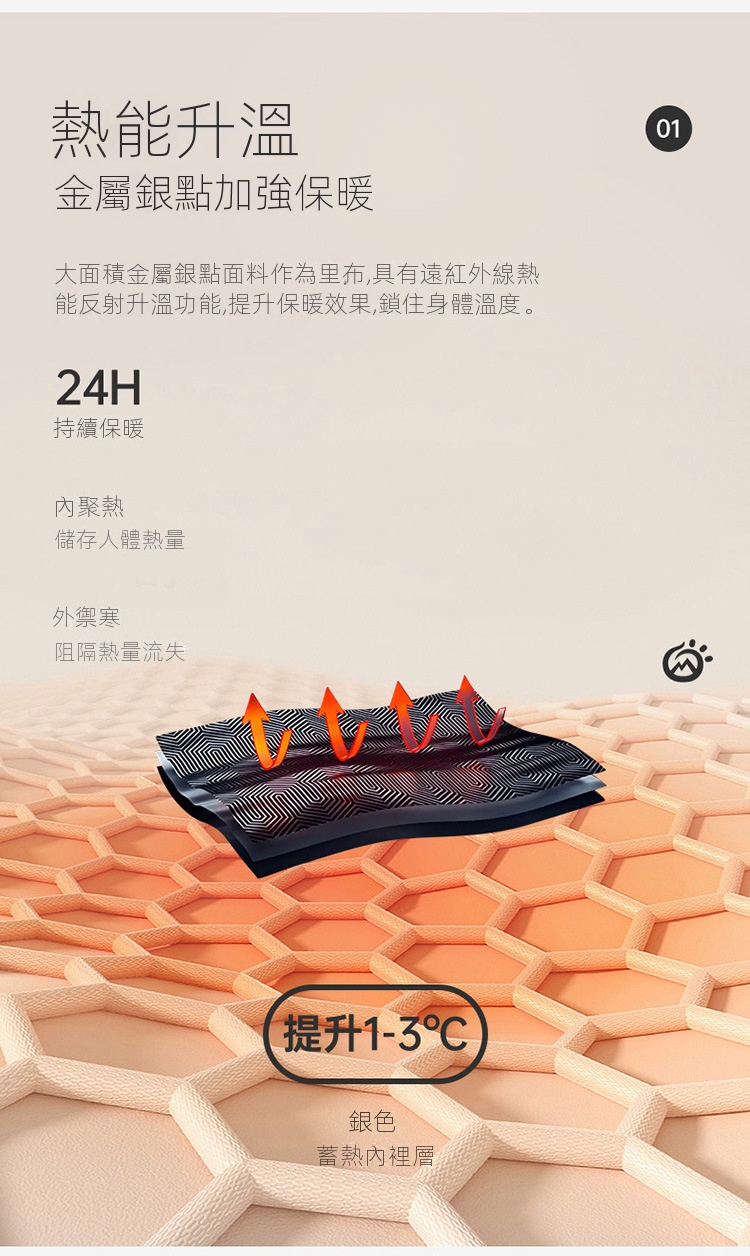 • 多功能性:銀色蓄熱內裡與熱能升溫金屬銀點,內聚熱量,阻隔外界寒冷,實現全方位保暖。