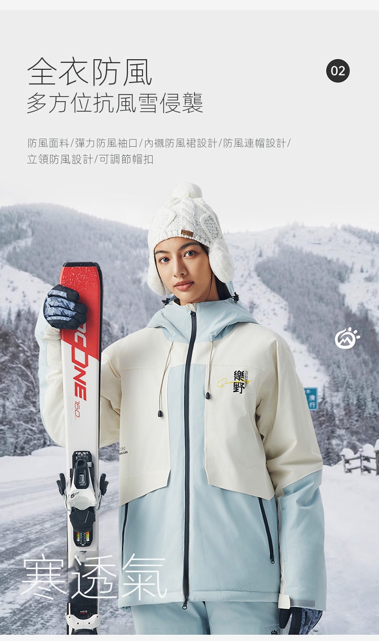 • 防風保暖:硬朗的戶外版型搭配全衣防風設計,有效抵禦寒風與雪域挑戰,讓您全心投入滑雪樂趣。