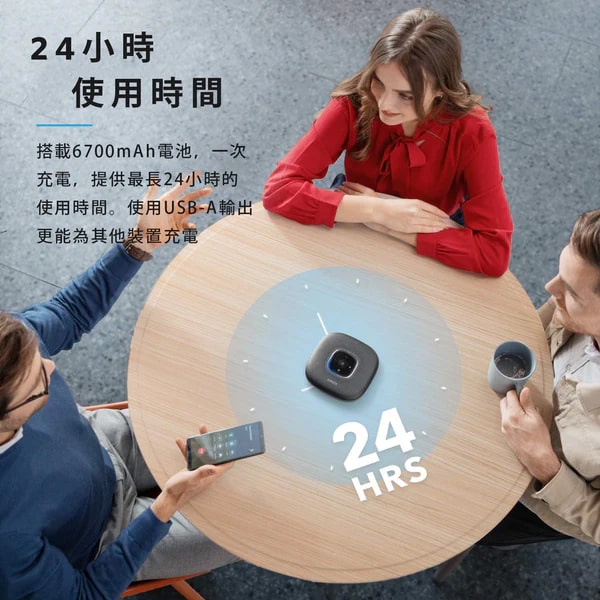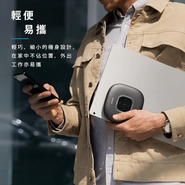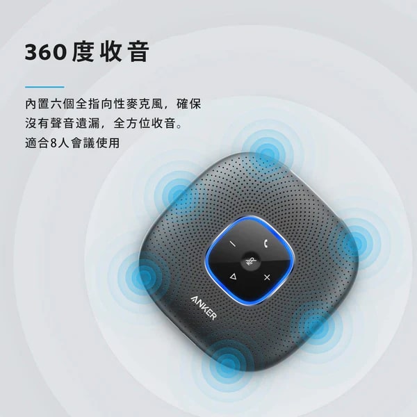 Anker A3301H11 PowerConf 藍牙喇叭揚聲器是線上會議首選,獲得 Zoom 認證,適用於最多 8 人會議。內置 6 個全指向性麥克風,實現 360° 全方位收音,搭配 DSP 技術,可即時降噪並優化人聲,自動平衡音量,確保遠近聲音清晰一致。產品支援藍牙 5.0 與 USB-C 連接,無需驅動程序,輕鬆連接手機、電腦。內置 6700mAh 電池,最長可提供 24 小時通話時間,配備 USB-A 充電埠,支援 PowerIQ 充電技術,可為其他裝置充電。其體積小巧(124×124×28mm),淨重僅 340g,便於攜帶,無論居家或辦公都不佔空間,外媒福布斯也稱其使用效果出色。