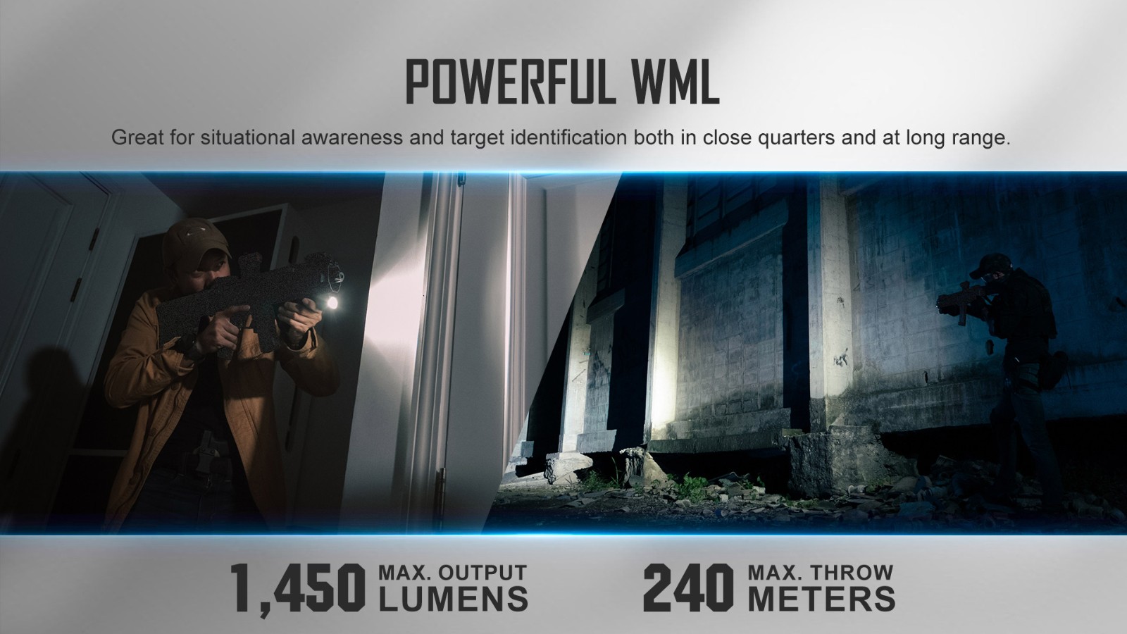 • 全新二合一設計:透過將符合人體工學的角度握把與強大的 WML 相結合,引領行業,防滑凹槽和手指擋塊可確保在緊張情況下實現防滑控制,同時隔離槍管與手之間的熱量。