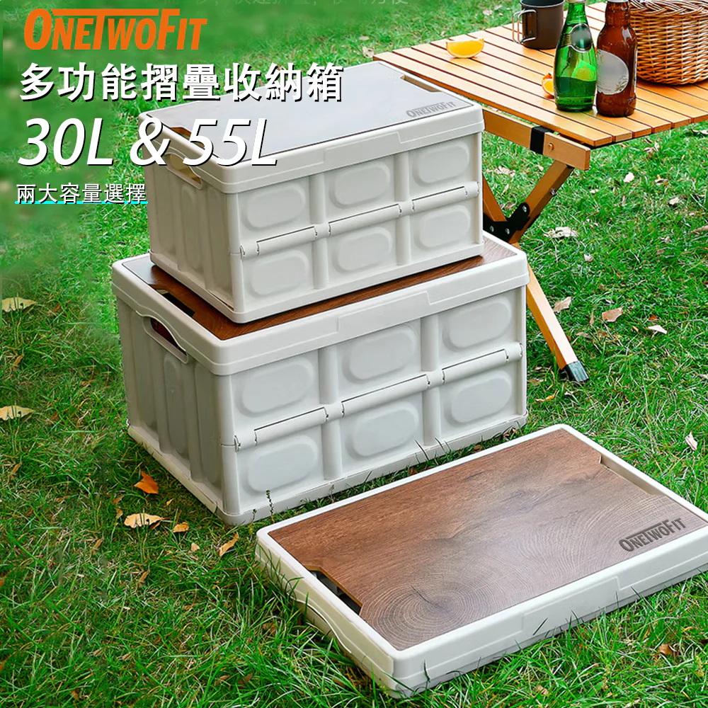 OneTwoFit ET0117戶外可折疊式露營木蓋收納箱,是戶外出遊的理想夥伴。箱體有30L、55L兩種容量可選,滿足不同裝載需求。其採用可折疊設計,方便收納與攜帶,不佔過多空間。實木蓋子不僅提升整體質感,還能在露營時當作簡易小桌,實用又美觀。箱體材質堅固耐用,能有效保護內部物品。無論是露營裝備、野餐食材,或是日常雜物,它都能妥善收納,幫助你輕鬆開啟便利有序的戶外生活。