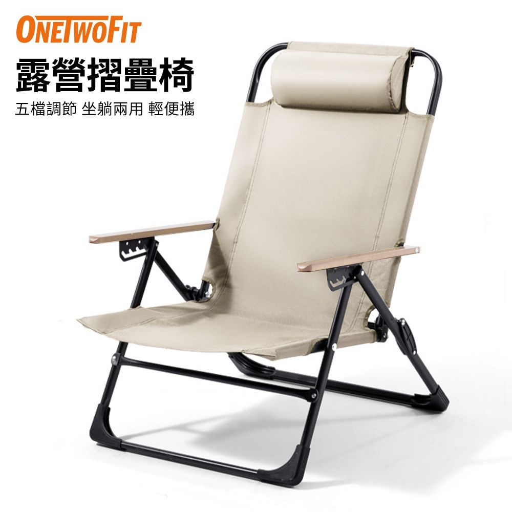 OneTwoFit ET052801 戶外露營輕便攜摺疊椅 - 卡其色 | 靠背五檔可調 | 香港行貨