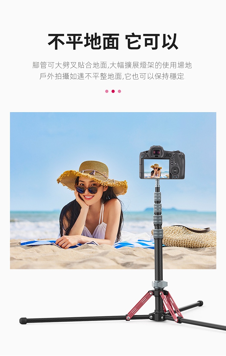 • 腳管可大劈叉貼合地面,適合不平整戶外拍攝環境