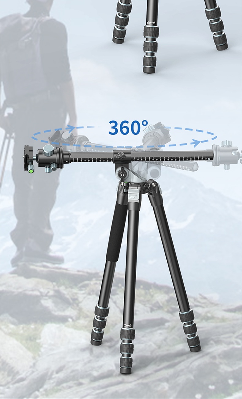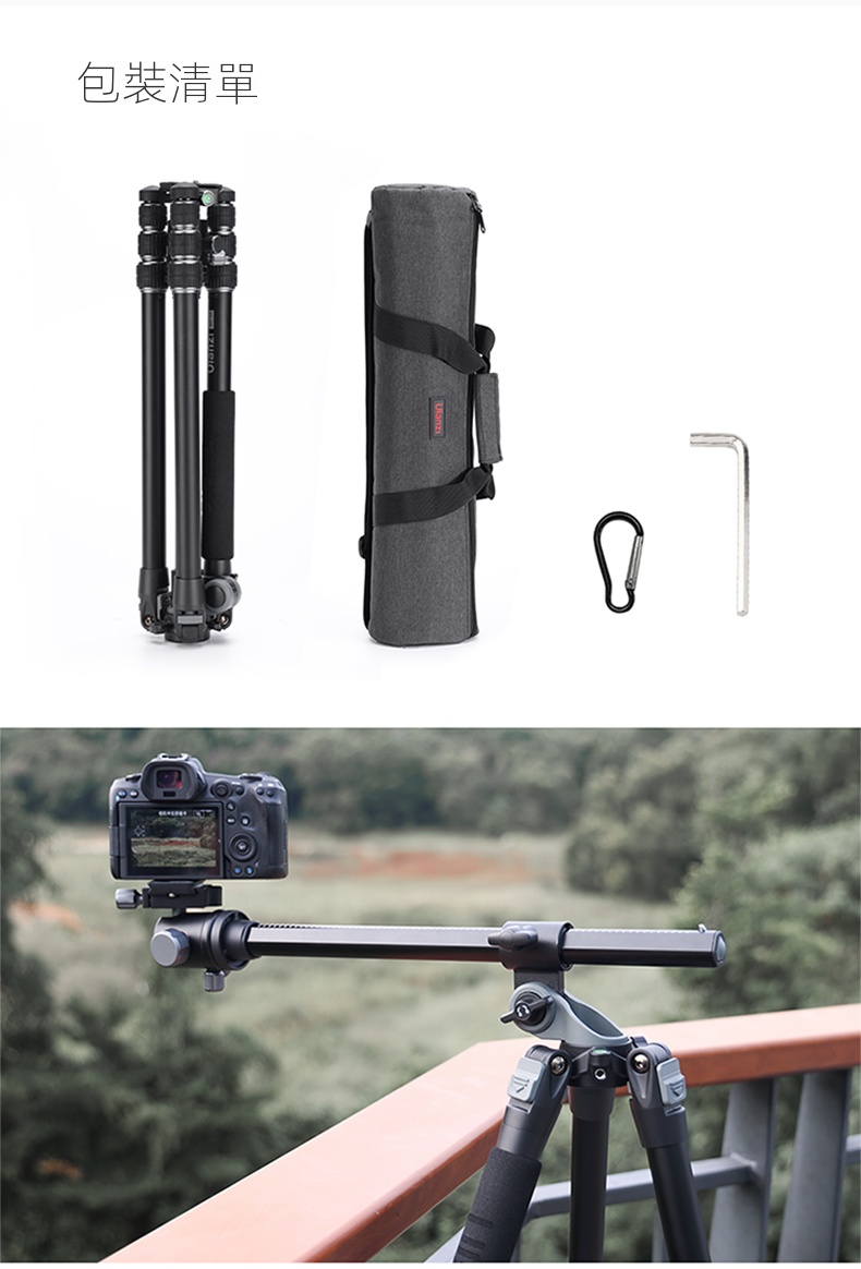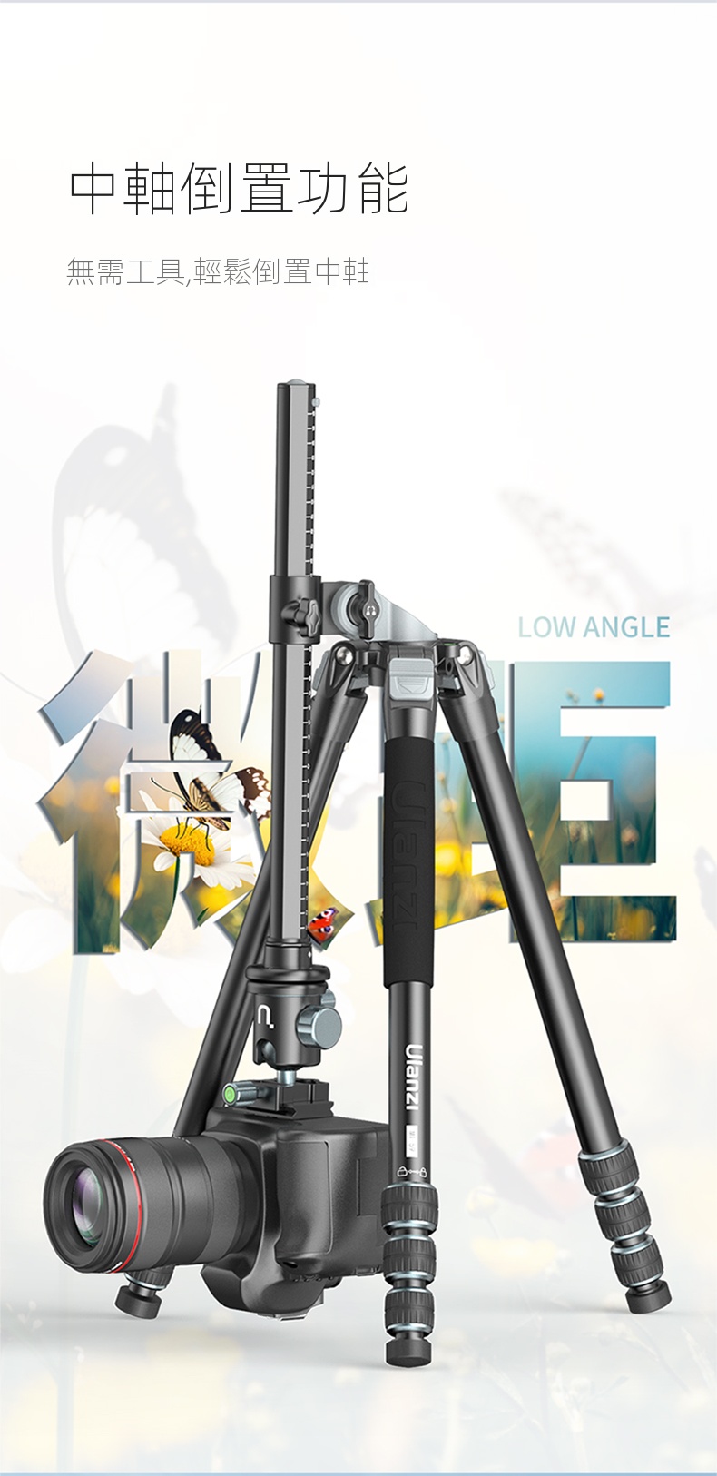 Ulanzi MT-59 鋁合金三腳架,專為多場景拍攝設計。1.7米的高度,支援俯拍、微距及低角度拍攝,滿足各種攝影需求。其獨特的一鍵式中軸萬向系統,可快速切換拍攝角度,實現180°俯仰與360°水平旋轉,提供無限創意可能。中軸可拆卸,輕鬆變身為獨腳架,二合一設計讓攜帶更便捷。配有螺旋鎖緊系統與可替換腳墊,適應不同地形。內建水平儀與防滑護手套,確保穩定性與舒適度。收納尺寸小,便於戶外攜帶。最大承重15kg,適合專業攝影師使用。