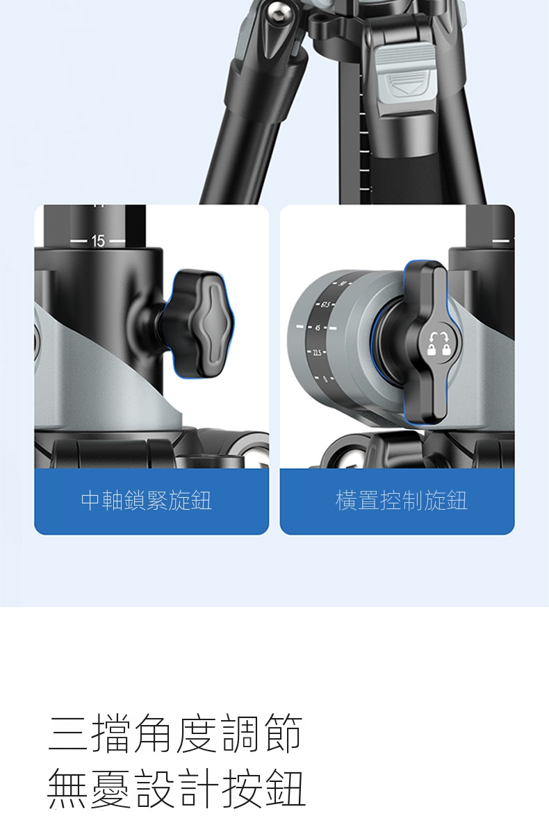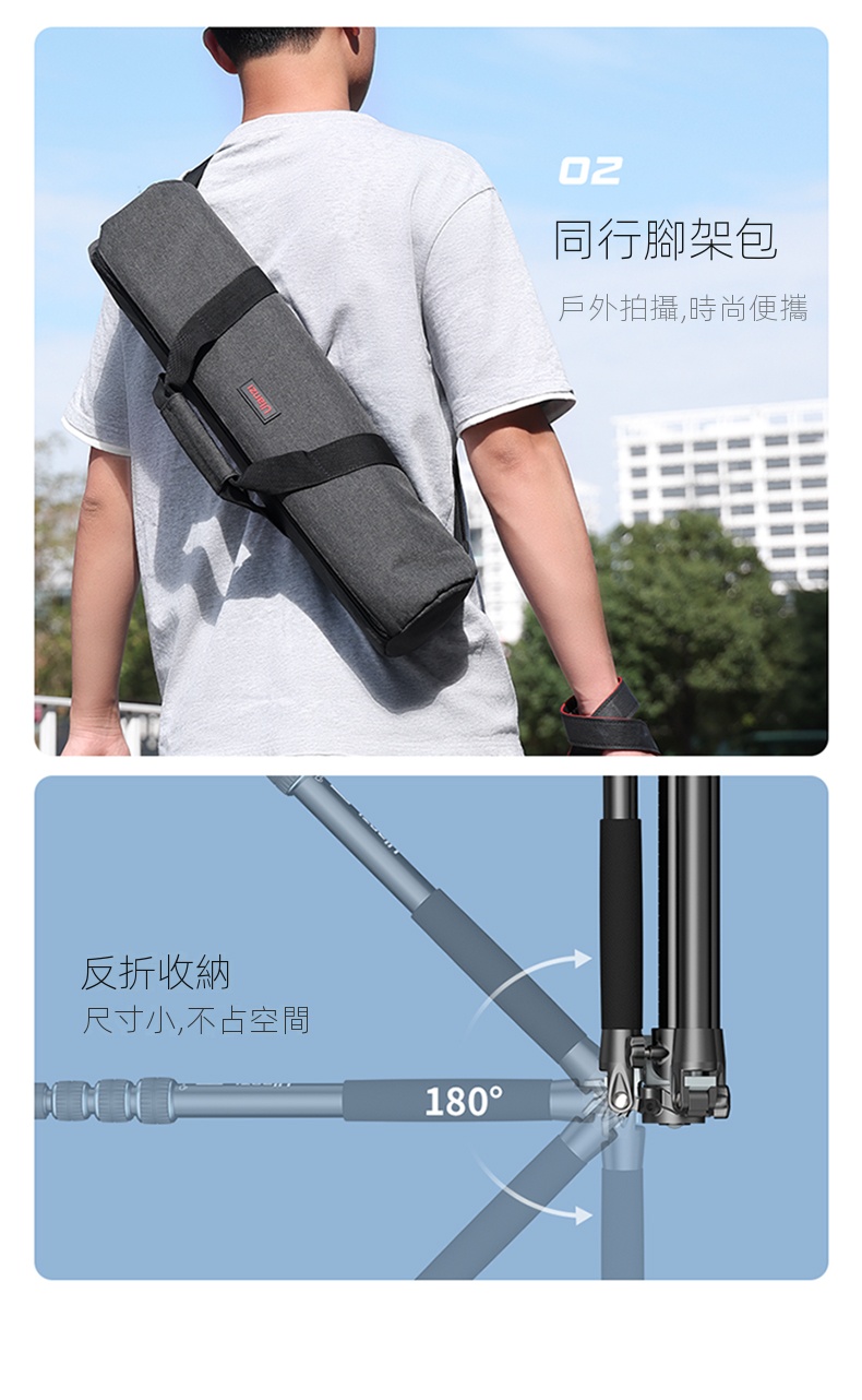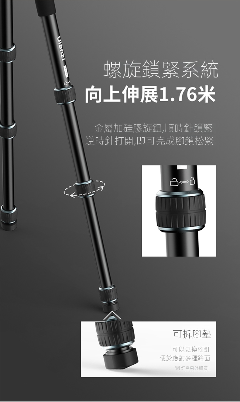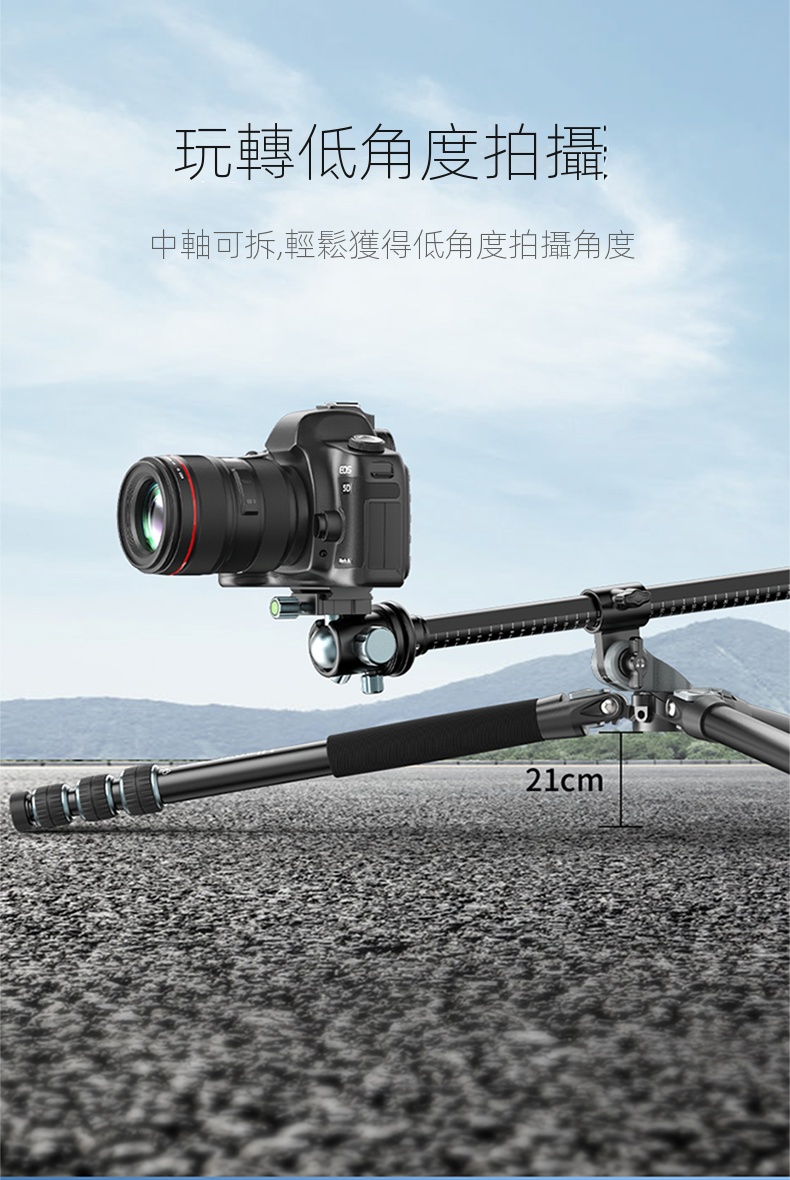 Ulanzi MT-59 鋁合金三腳架,專為多場景拍攝設計。1.7米的高度,支援俯拍、微距及低角度拍攝,滿足各種攝影需求。其獨特的一鍵式中軸萬向系統,可快速切換拍攝角度,實現180°俯仰與360°水平旋轉,提供無限創意可能。中軸可拆卸,輕鬆變身為獨腳架,二合一設計讓攜帶更便捷。配有螺旋鎖緊系統與可替換腳墊,適應不同地形。內建水平儀與防滑護手套,確保穩定性與舒適度。收納尺寸小,便於戶外攜帶。最大承重15kg,適合專業攝影師使用。
